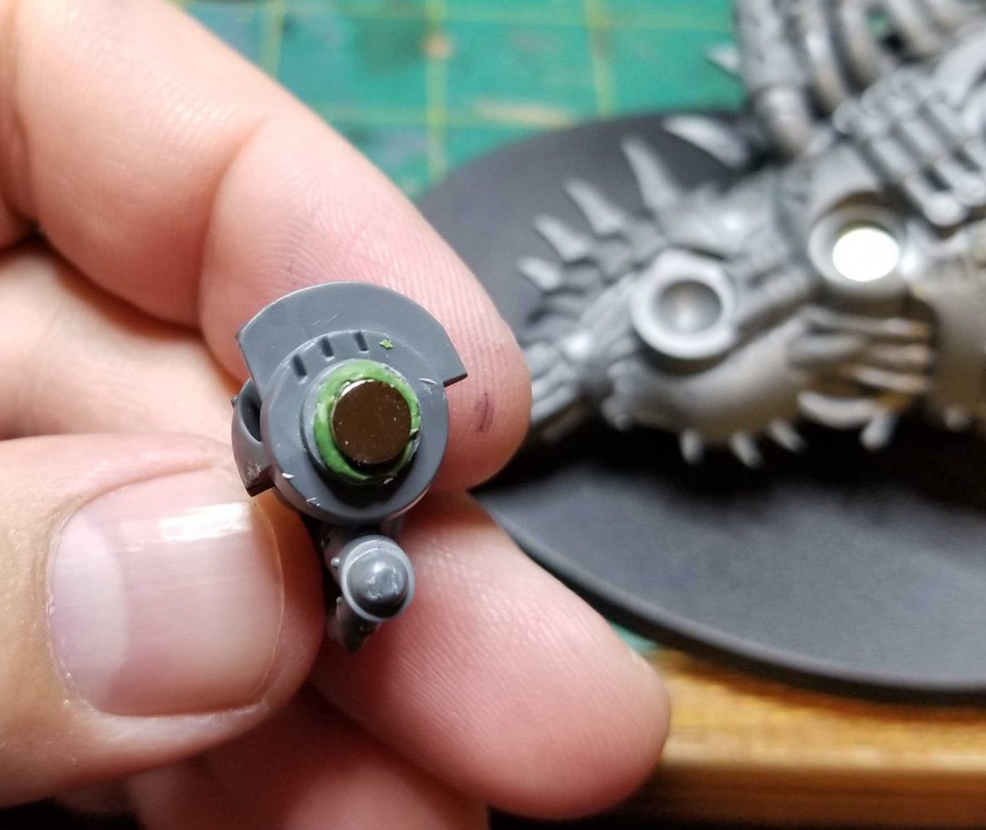 Magnetizing the arms. You also need to magnetize the other ends to hold two sets of guns - plasma, and autocannonOnce you have all the magnets in place however, painting it is pretty much the same, only easier because you can do it in parts.