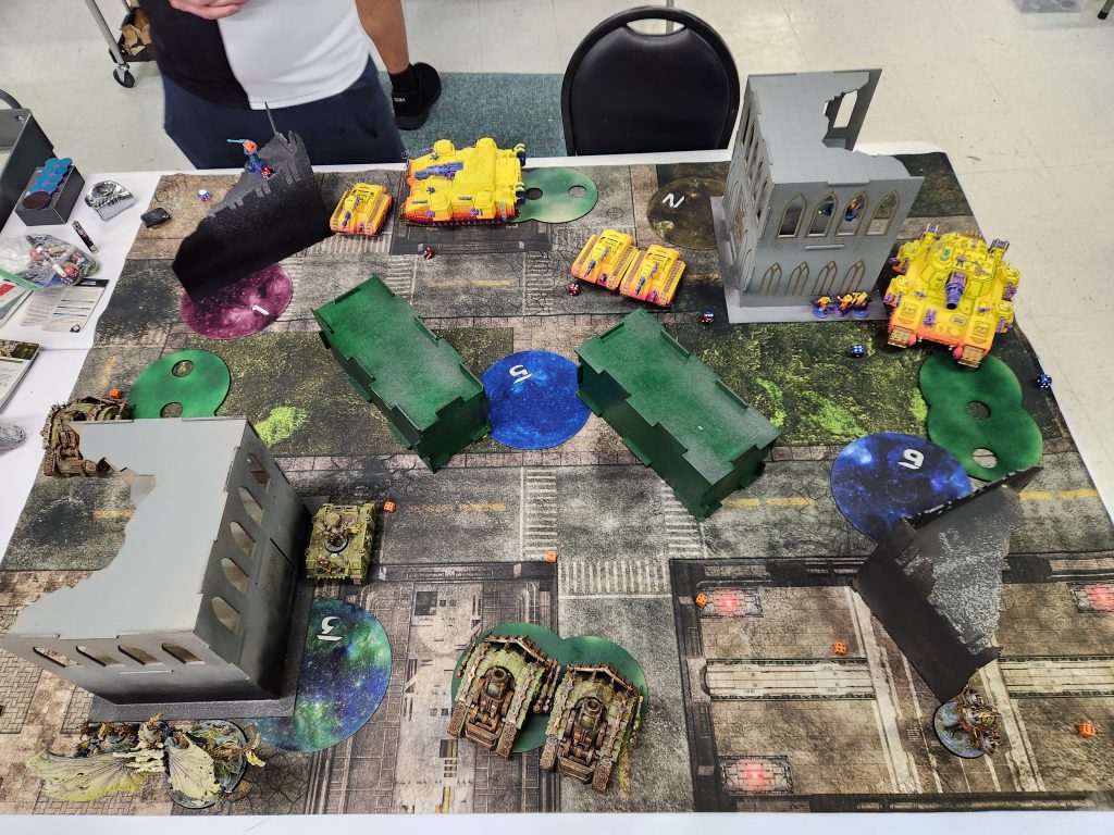 I played Steven last year in round 6 of Warzone Houston, when he was on Tyranids. Steven is legitimately one of the chillest, best dudes in the hobby and an absolute joy to play. Our game was an absolute nail-biter and ultimately came down to my getting lucky? unlucky? on the first turn.