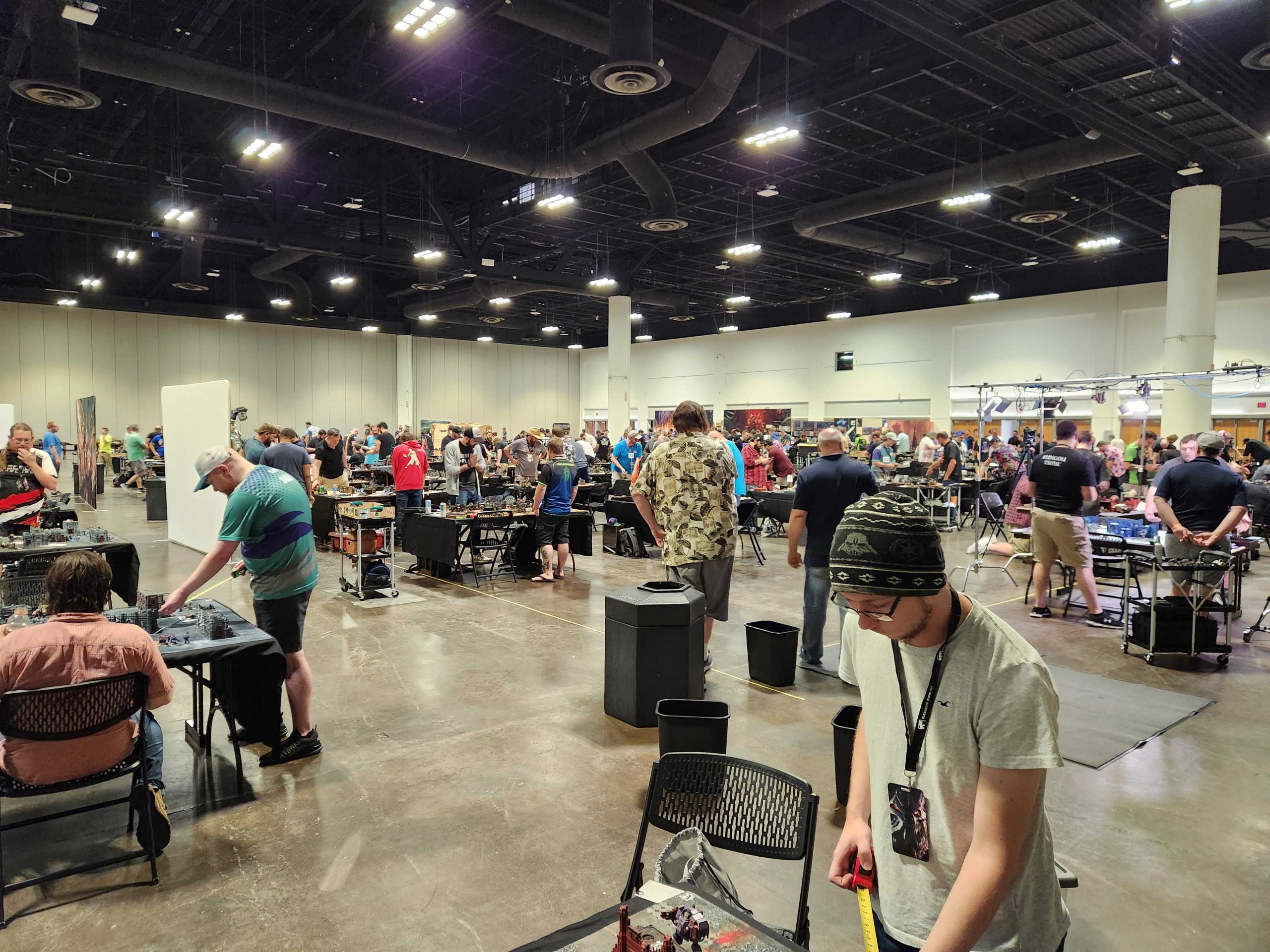 Players mulling around between rounds on day 1 at the GW US Open Tampa event.Norman and I head over to the convention center around 7:30am; the first round won't start until 9:30 any given day but there's a check-in process on the first day which starts at 8am. We arrive, check in, unpack, and meet up with the rest of our crew. The Goonhammer crew at this event is pretty substantial: