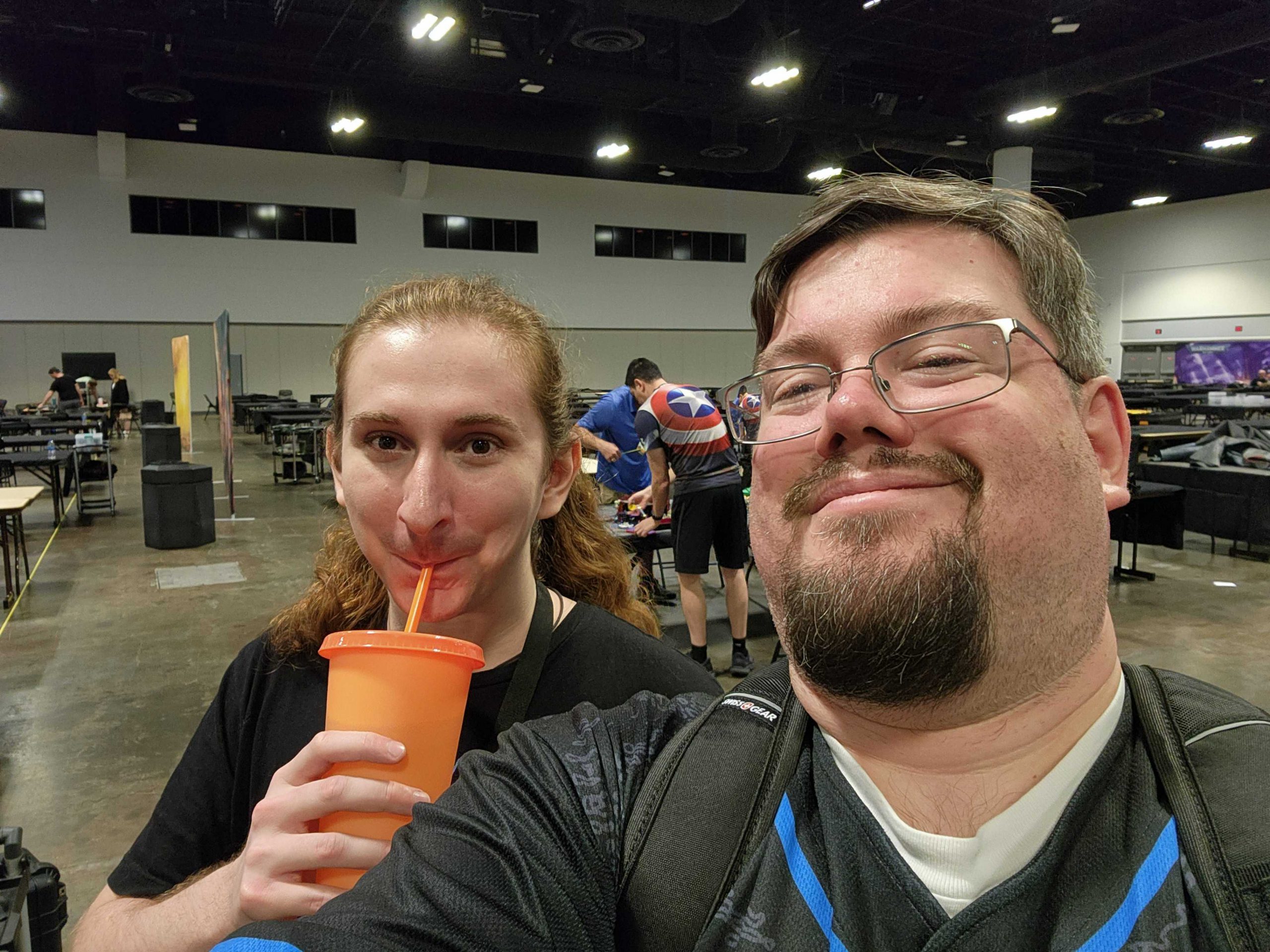 We go to dinner over at Sparkman Wharf; it's about a mile walk from the venue and past the Tampa Bay Lightning's arena, where John Mayer is playing that night. The wharf has a bunch of restaurants and food stands outdoors, which makes it ideal for a large, disorganized group like ours. We meet up with Ben Jurek and his wife Danielle for a bit and chat. Ben's a great guy who I met at Tacoma in 2022 in the penultimate round of the 3-1 bracket and he's quietly become one of the world's best Warhammer players since. Now he's also become a filthy eldar player, but there's only so much you can do about that.