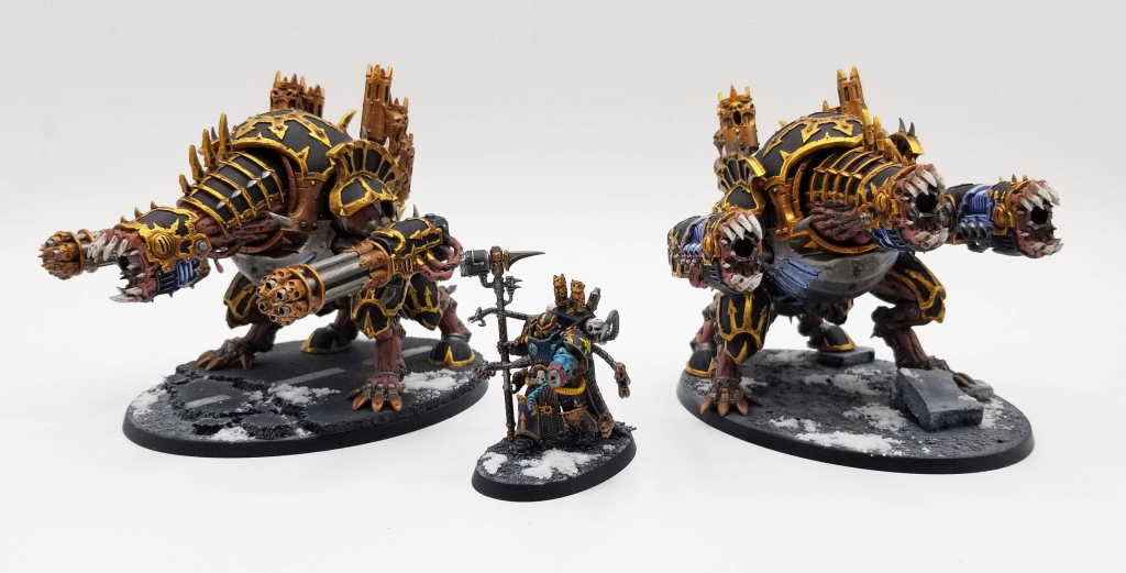 Let's talk about improving older models. As I've been doing this, I've been continually improving when it comes to modeling and painting. And that means I have a lot of older models which frankly either do not look great or which looked fine at the time but don't meet my current standard or a paint standard I'm comfortable with. There are a number of things which may require fixing with them.So let's talk about an example. Specifically, I knew I wanted to bring some Forgefiends to the event, and I already had a couple. These: