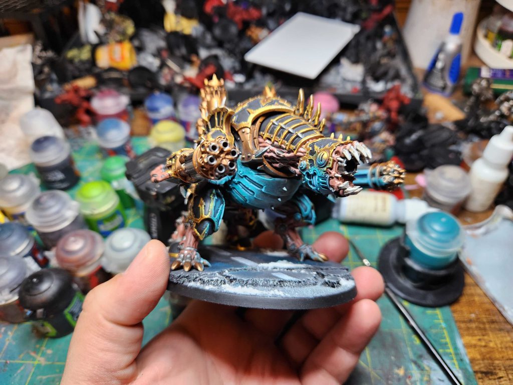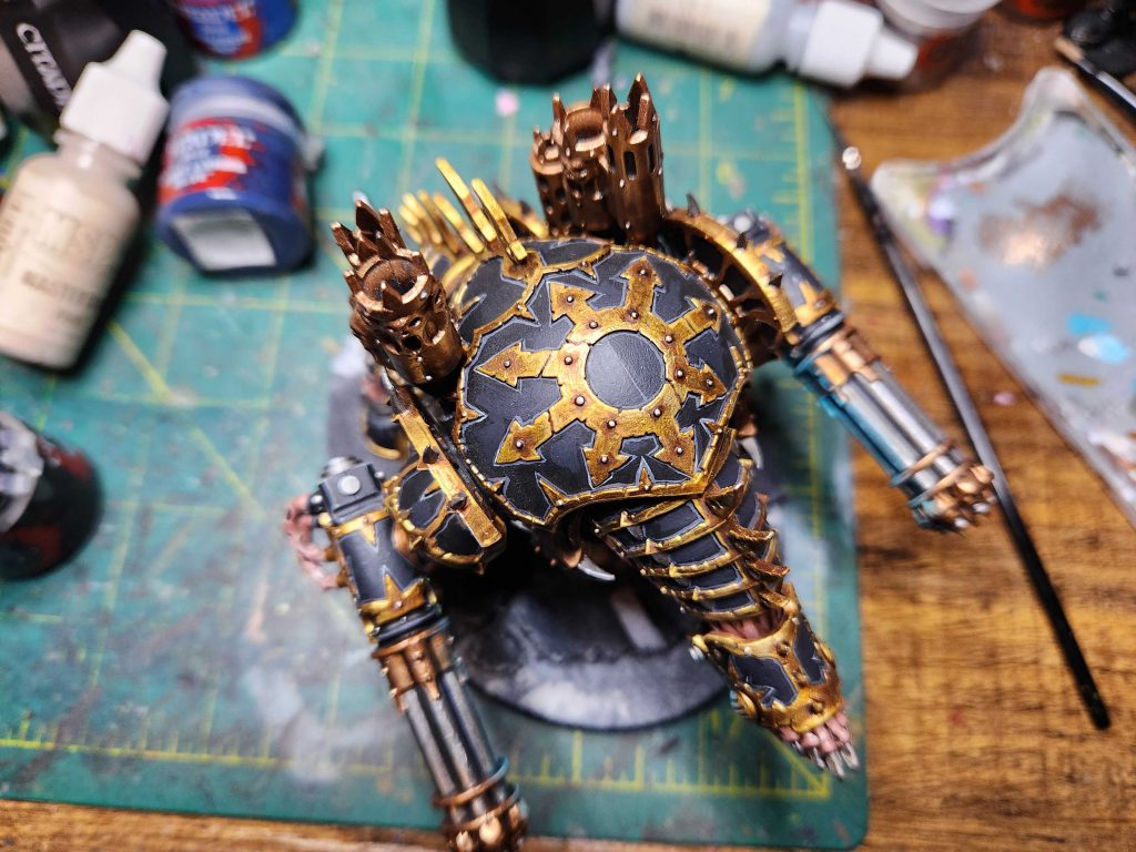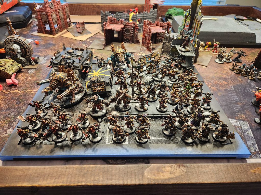 Alright let's take some photos of these bad boys to show off my hard work. A lot went into this army and I'm extremely proud of how they look - my best army to date and it isn't close. It's still got decent power - there's a unit of Forgefiends and Berzerkers and a big blob of Terminators - but it also goes hard on the theme in that I'll have one unit of each god in every game I play. On the whole I'm very happy with how it turned out and excited to take it to Atlanta. The hard part will be traveling with it but I think it's just small enough and infantry-heavy enough that it should easily fit into my large Citadel case.Next Time: The Grand Narrative
