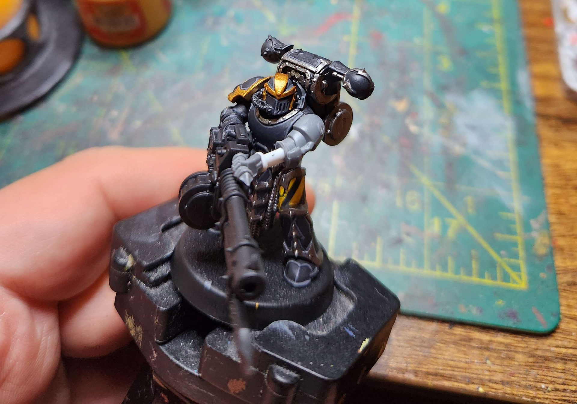 With some extra time, I continued to add some new models to the army. I'd already done a Fallen for a how to paint article, but I had the bits to add an Iron Warrior as well to my standard Legionaries, so I made an autocannon guy. This was more complicated than it looks: