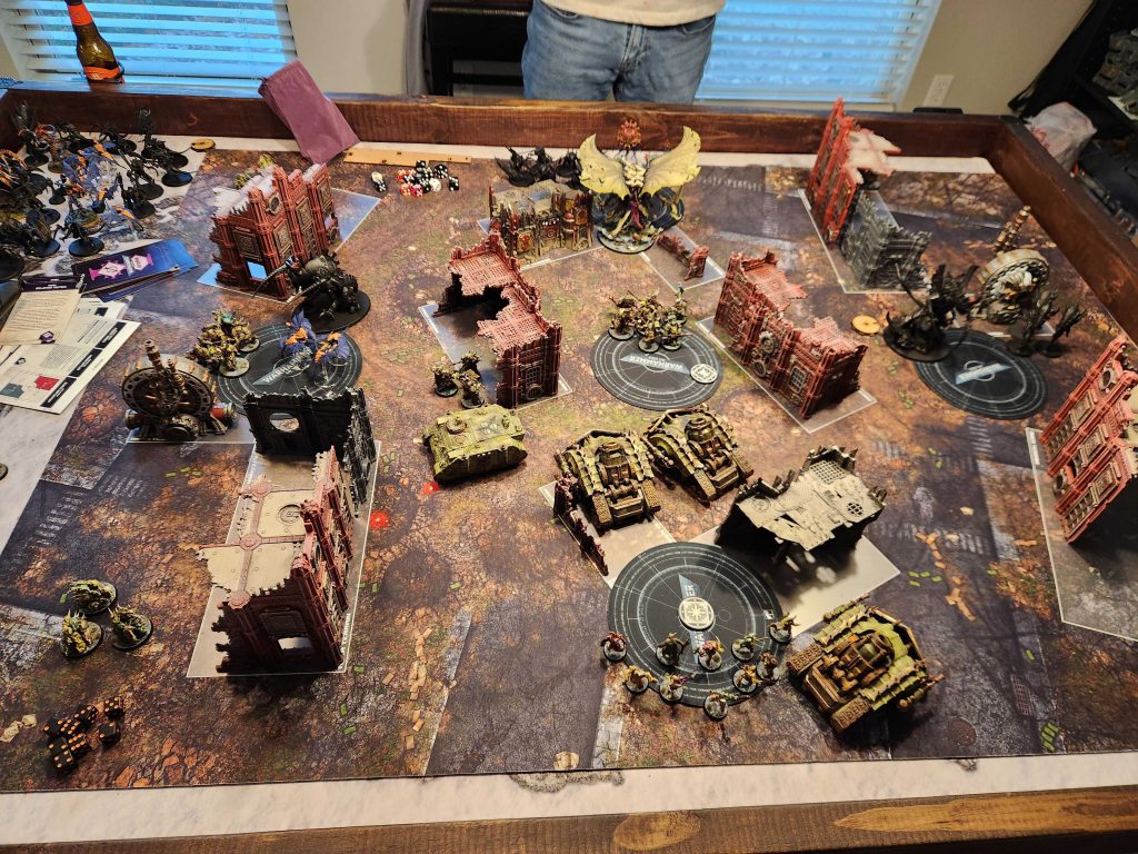 I don't love losing the Lord of Virulence but ultimately he's not doing as much for me as I'd like and I want to push the PBCs forward most games anyways. That said, he may show back up again after this game - the ignores cover bonus is very good, though generally two units of Deathshroud feels like too much - they're too slow and if they don't arrive via Rapid Ingress they often risk not engaging with anything meaningful.