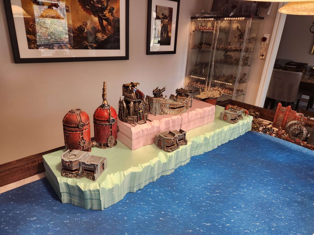 I have the Night Lords on the horizon, and in the meantime I've been painting a ton of minis for our updated how to Paint Everything articles. January is young, but here's what I've painted since the last update:The narrative stuff is currently taking up a lot of my hobby focus, as I've been thinking about building new terrain for narrative games. A big thing I've always wanted is a table with a major bridge as the feature, and I've always wanted a significant river as well, and that's what I've been working on. While you can just make a river that sits on top of your table, I've always found that to be kind of lame, and also it doesn't convey the kind of obstacles I'm looking for - I want a river and bridge that represent a massive point of strategic importance, and are also playable surfaces. So the plan here is to use the ocean/water mat I bought a couple years ago for the "A Fell Tide" mission and build surfaces that sit on top of that, using it as the river. This means carving up a bunch of 2x2 foam insulation sheets.