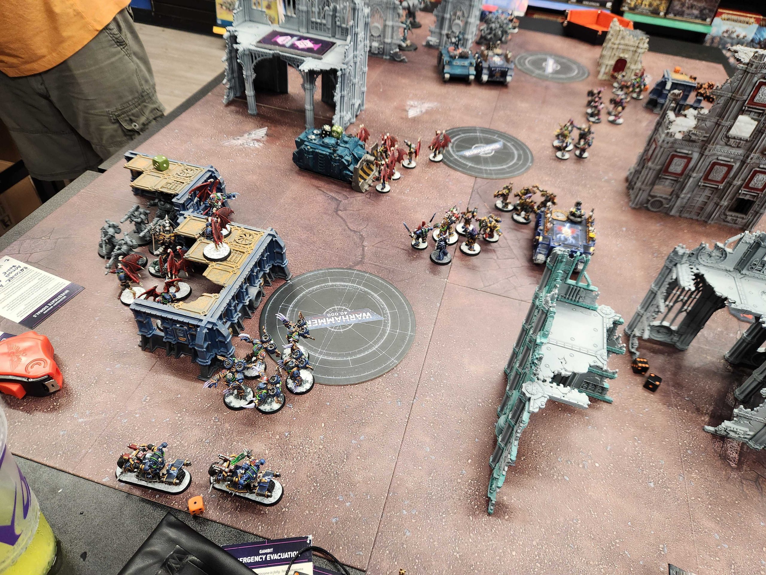 For my test game I hit up the local Warhammer store and play a game against Greg (a different Greg from our site master and from Klobasnek), who is testing out his own Chaos Space Marines army. We do a test game on Sweeping Engagement and I end up going second, which isn't ideal, as Greg spends turn 1 blowing up both of my Heldrakes, though he doesn't manage much else. That's good for me because the terrain we're working with is pretty bad - I really need to get a good set of terrain going at that store.