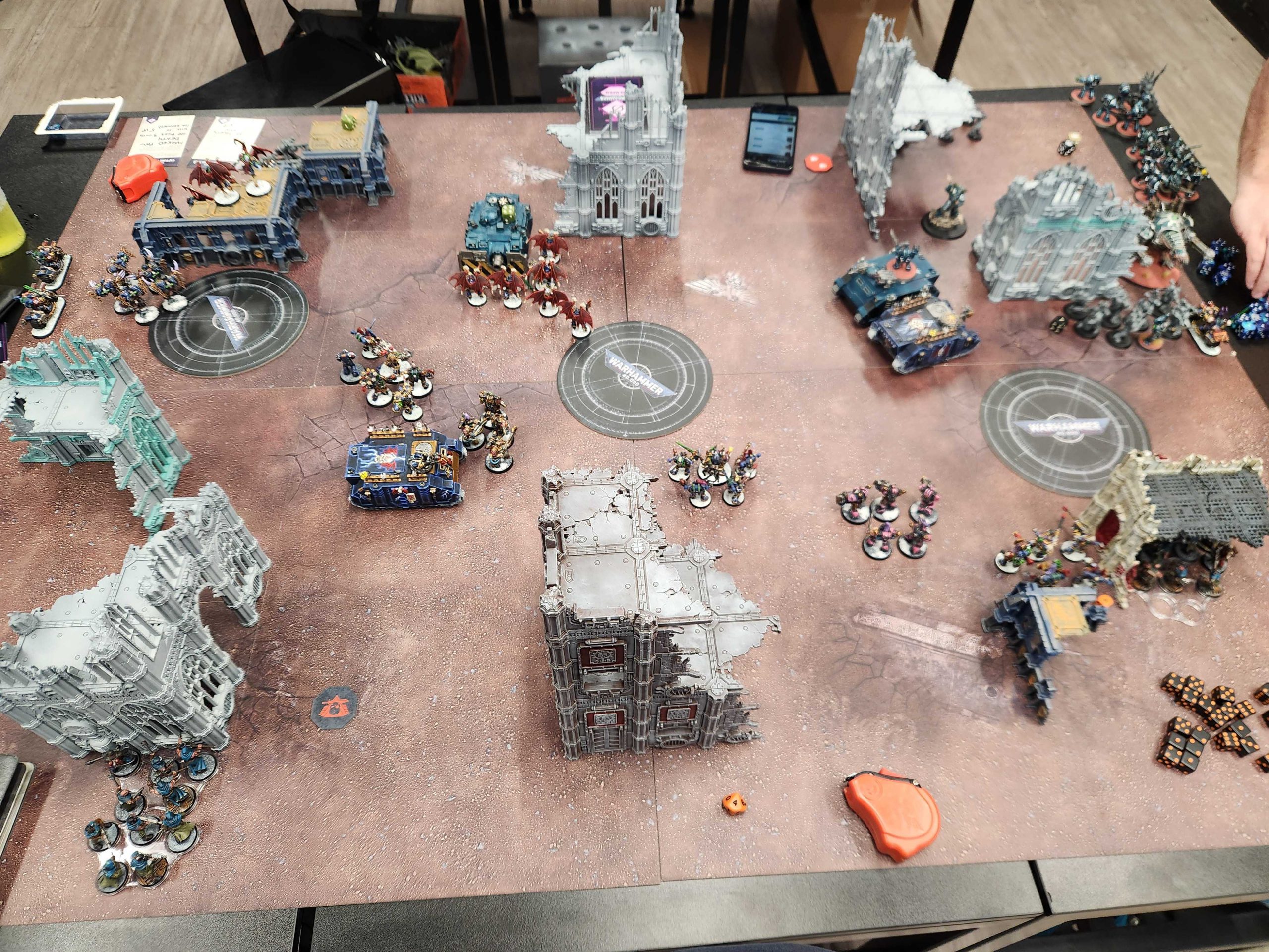 This game was pretty frustrating. Ultimately I think it was very winnable on my part, but every part of my army just felt pretty anemic - Haarken's raptors spent like two turns locked in combat with Havocs, just continually failing to kill them, while the Noise Marine battle-shock tests never caused a failure. The only bright spot were the bikes, who consistently put in work and were well worth the 70 points they cost.
