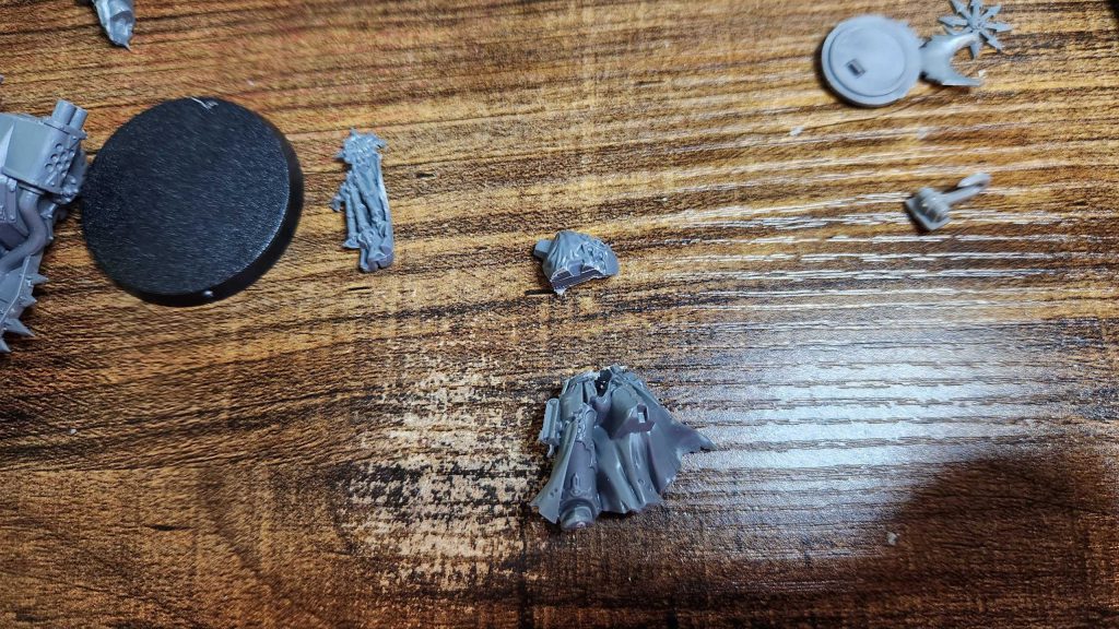 Converting bike models always sucks. You either use the dinky little legs that come with the bike, or you have to do some custom work and that usually involves cutting the legs apart at every joint and re-setting them to make them work. In this case, I started with the plastic Chaos Sorcerer, who's a solid kit, and gave me something easy to cut apart:
