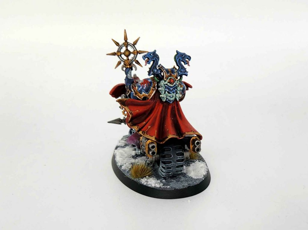 My goal with this is to keep the appearance of the lower cloak and to hide the green stuff work with accessories like the a grimoire and a scroll. I also had to come back later and fill in some gaps in the cloak with liquid green stuff to smooth things out.