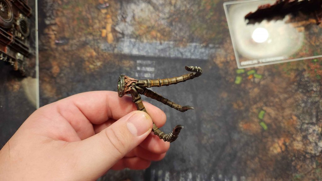 Credit: Robert "TheChirurgeon" JonesThese weren't as bad as I expected and I'm happy with how they turned out. A lot of the work on these was solved by using leadbelcher spray on their bottom halves, then shading that with Agrax and covering huge parts with Typhus Corrosion and a drybrush of Ryza Rust. The conversion part I'm happy with on these is the scourges - having assembled many Forgefiends means I have lots of Maulerfiend bits, so I just used some greenstuff to attach those to a havoc launcher plate and then put a magnet on there to stick it to the Defiler body. It looks way better than the stupid standard defiler and construction-wise, it was just a blob green stuff smeared over and painted fleshy: