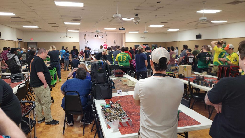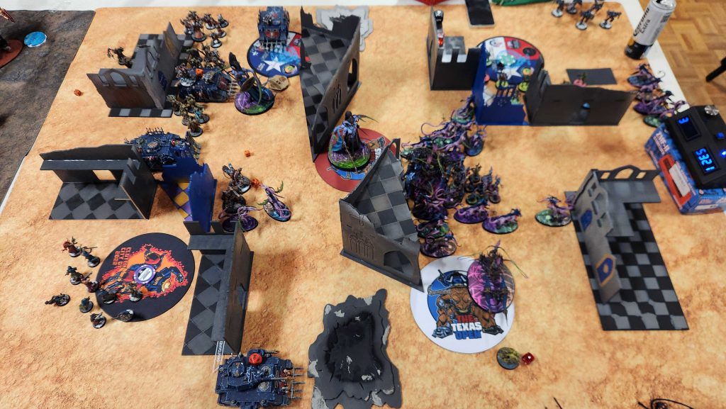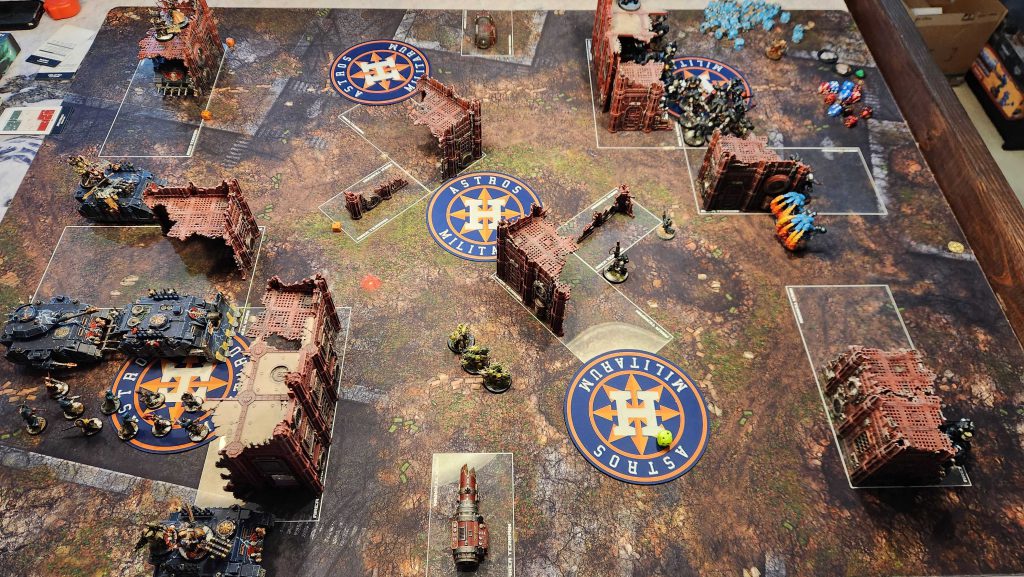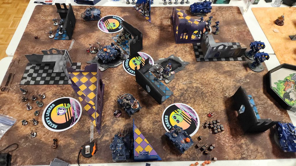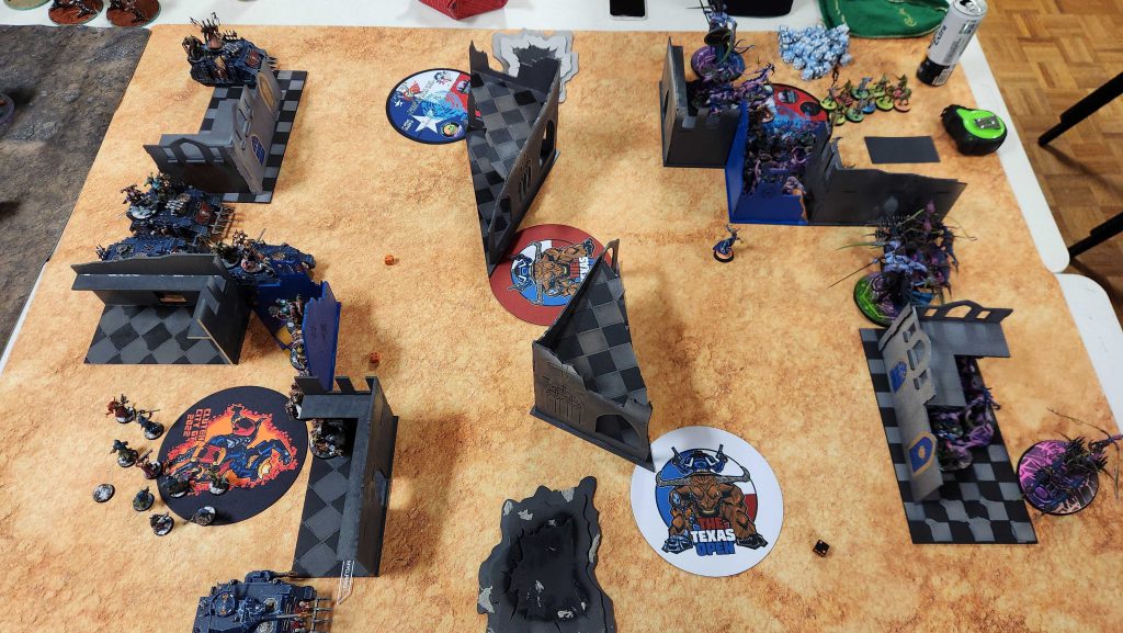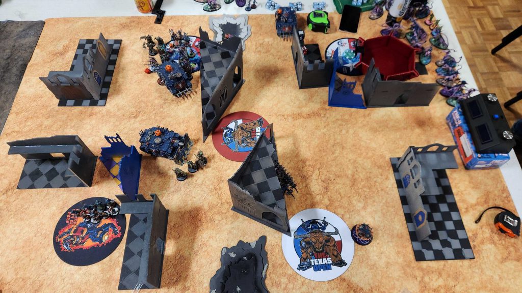 The Clutch City GT takes place at a Knights of Columbus hall about half an hour from my house, making it incredibly convenient from a location standpoint. The hall itself is a bit warm but has plenty of space and solid tables, and outside of some parking issues (the field we were directed to park in had more than a few piles of horse shit), was a great space for an event and likely dirt cheap to rent. So I generally have no complaints about the venue. The terrain was another matter - it was very much a mixed bag, with some tables having very solid WTC style layouts and others trying their best to (poorly) approximate GW layouts. That said, even the bad layouts were still dense enough to be serviceable, and a definite step up from the Warzone layouts. Which is to say I wasn't particularly upset by having to play on any of them with a primarily melee army.