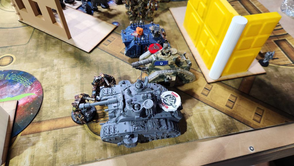 Of course, it's now turn 2 on my end and we're getting into the pressure part. I rapid ingress a unit of Obliterators and drop the other one, and then use them to drop the Dorn to low single-digit wound counts, then charge into it. The Dorn and Russ lived a frustratingly long time as I got them down to something like 1 wound each and they just kind of hung on longer than I expected. That said, my Plague marines put in work up top, while my Chaos Lord and his Legionaries took the brunt of mortar fire before he swept into Connor's deployment zone and started killing mortar units by himself.The big swing happens turn 3 when Connor draws Contianment and No Prisoners. He can easily drop three units if he focuses them down - and he'll score 5 for No Prisoners - but he has no units he can Contain with, and any game where you don't contain for 6 is a game you're likely to lose. He scores zero for it, and that's indicative of the board control issue: I've been holding three No Man's Land objectives and defending four all game, and I'll end up maxing primary by the bottom of turn 4, while Connor can only hold two and his grip on the No Man's Land objective is slipping.