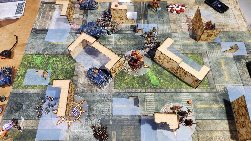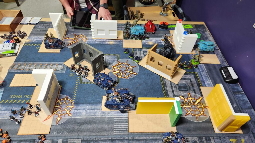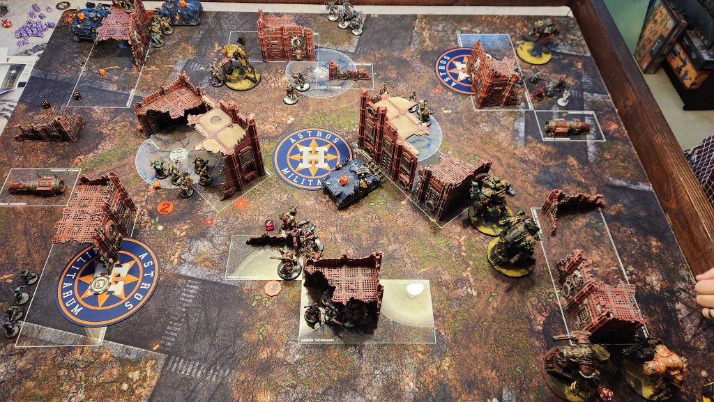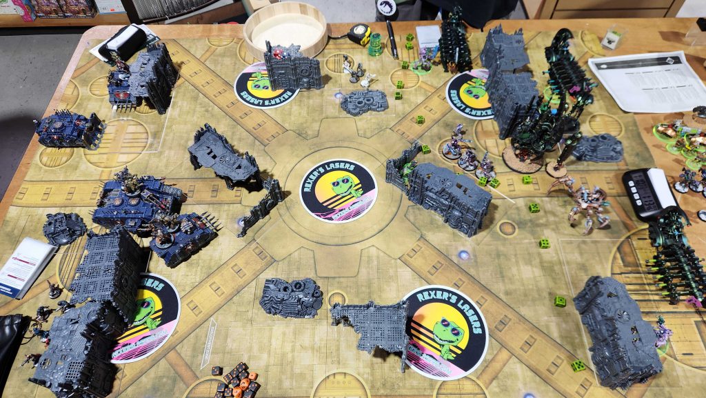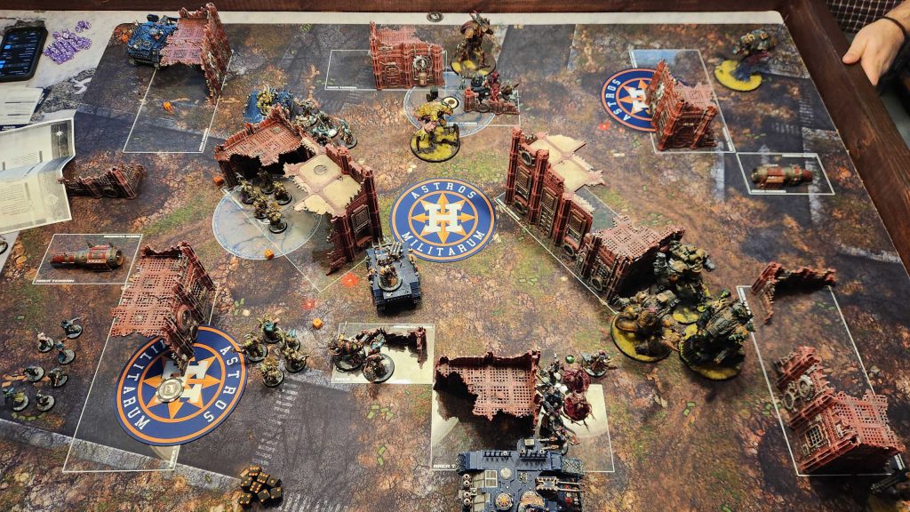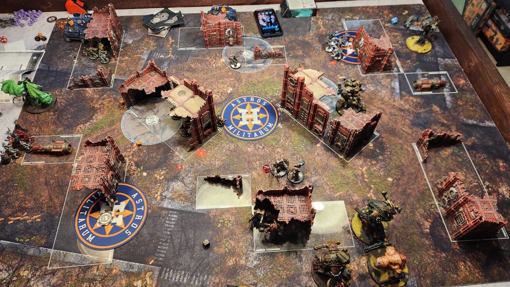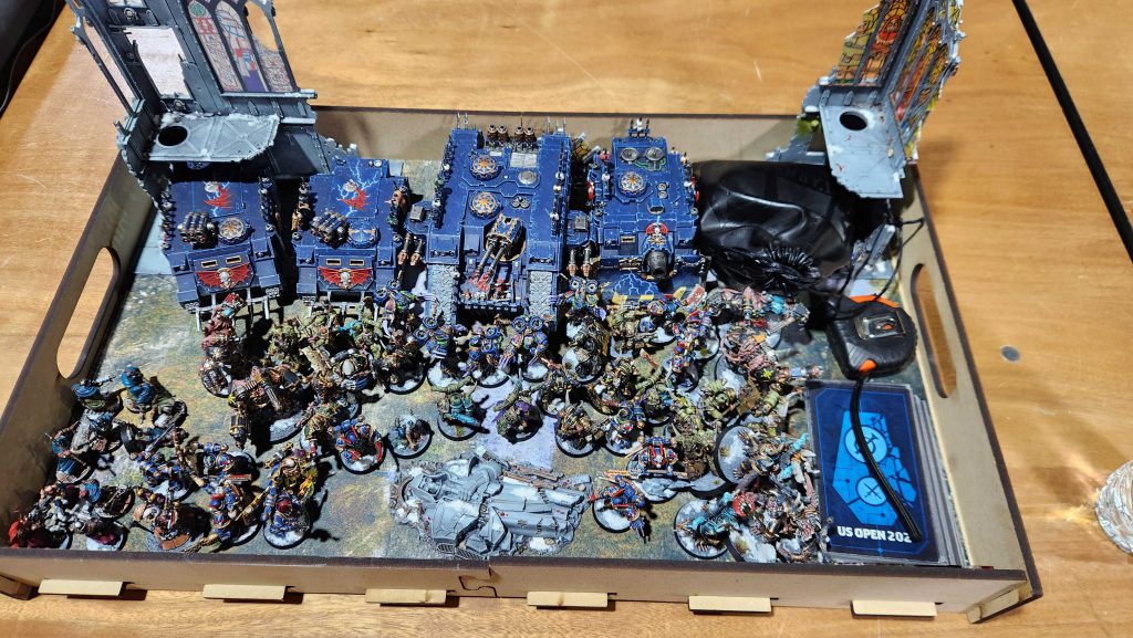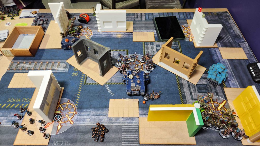 Ettin isn't the closest store to my house but it's not far either and I can't stress enough how much of a difference it makes to only have a 15 minute drive home after an event. Makes planning Saturday night stuff actually doable. Ettin is a solid store and they've massively improved their terrain since the last time I was there, though like most stores they're still in need of a good terrain hobby day to get all of the stuff painted. We get off to a bit of a late start waiting for the store to open but things run very smooth from there.This event was a fun look at the new meta - of the 20 players on hand I think like 18 of them were playing Grotmas Detachment lists, including me.