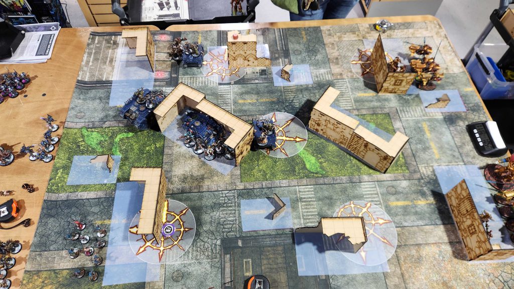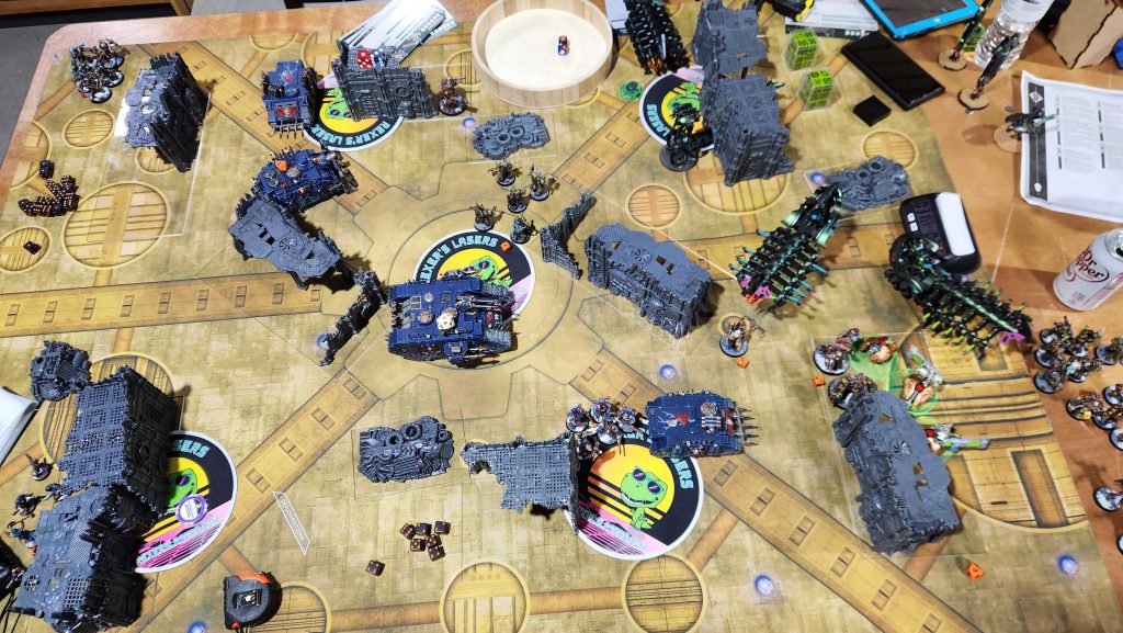 I'm not sure what Joey could have done here - his list just isn't equipped to deal with the pressure I can bring and maybe the only way would have been to hold Skorpekhs back to counter-charge to pull pressure off his arks. In that scenario he's banking on catching up on scoring late, and I think that can work in Take and Hold where you can pull 30 on primary objectives in rounds 4-5.