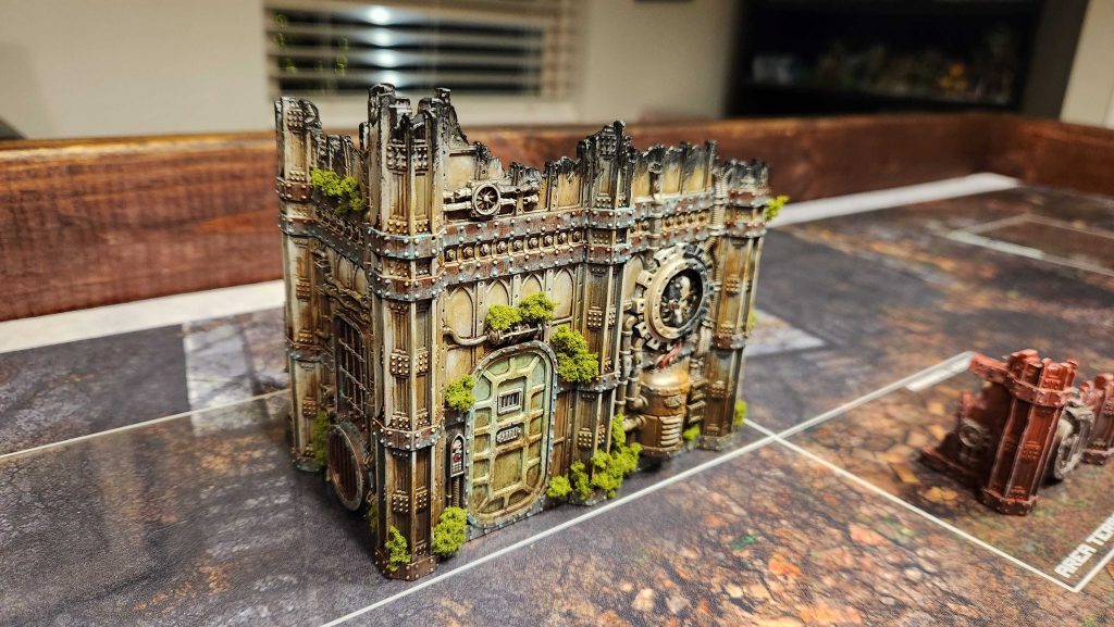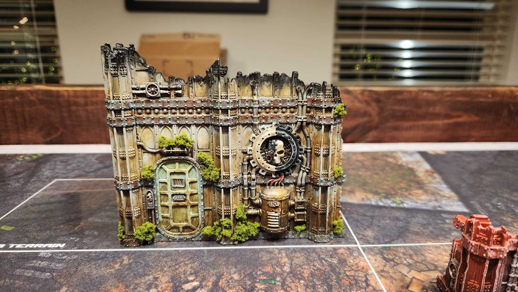 I had some extra time so I started on a new terrain project: Painting my Volkus killzone terrain. I really, really liked the theme SkySerpent did for his terrain - you can find his tutorial on Instagram here - and I wanted to replicate it for my terrain. Also I want to do a new theme for a table with more of an overgrown/jungle theme, and this is going to be the first part of that. I didn't go through the trouble of doing oil washes but I've come up with a solid facsimile using washes. The key secret is that I replaced the grime wash with a 2:1 mix of Typhus Corrosion and Plaguebearer Flesh Contrast paint. I'm pretty happy with the result: