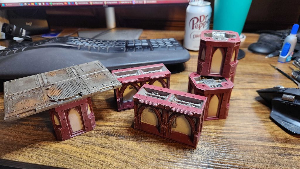 Let's talk hobby progress. Last time around I was sure I was going to finish painting that Zone Mortalis terrain. That... hasn't happened yet. I did get more of it done: