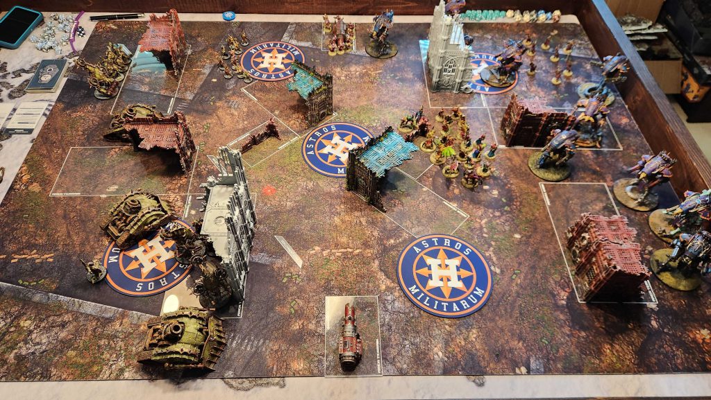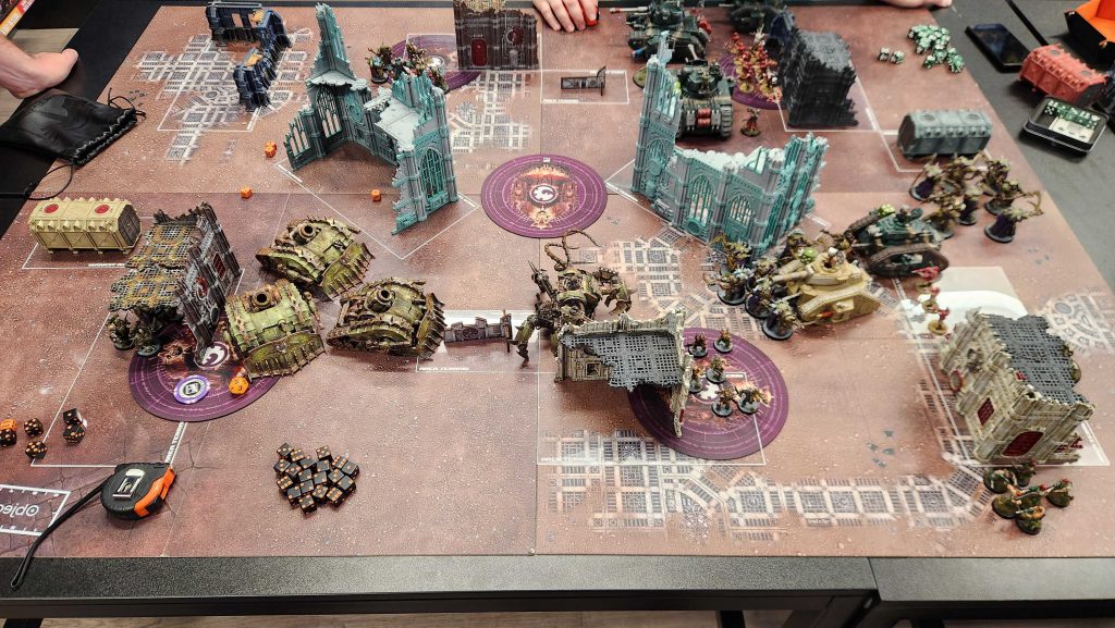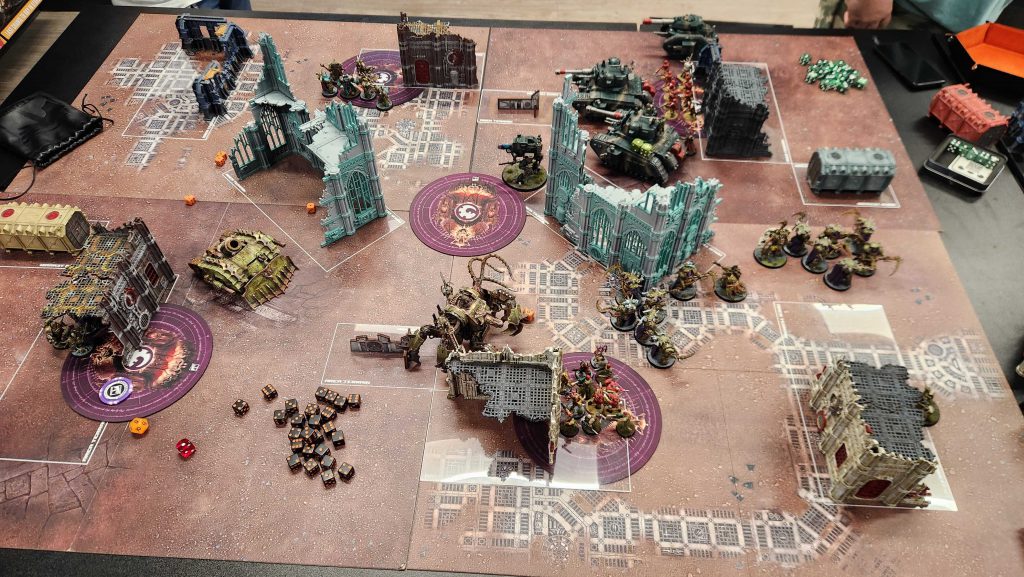 This was a pretty quick but interesting game. I figured out pretty quick that without sticky objectives I need a different, cheaper backfield holder unit and that this army really needed 2 units of Poxwalkers instead of Plague Marines.