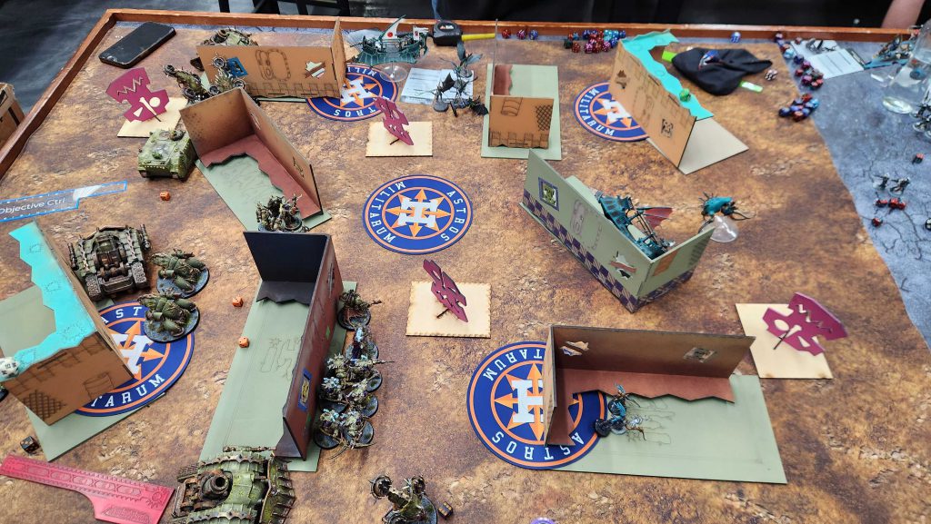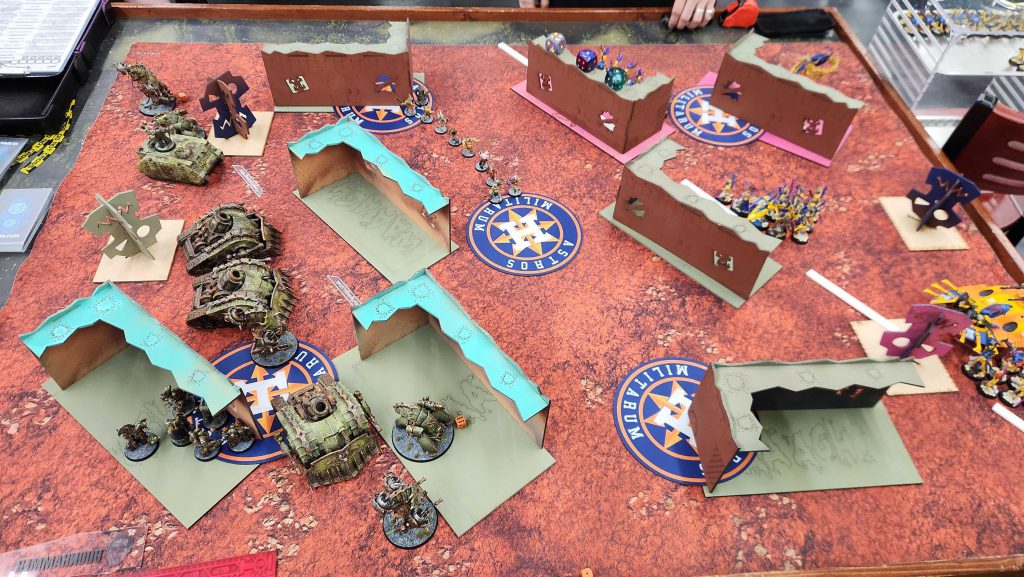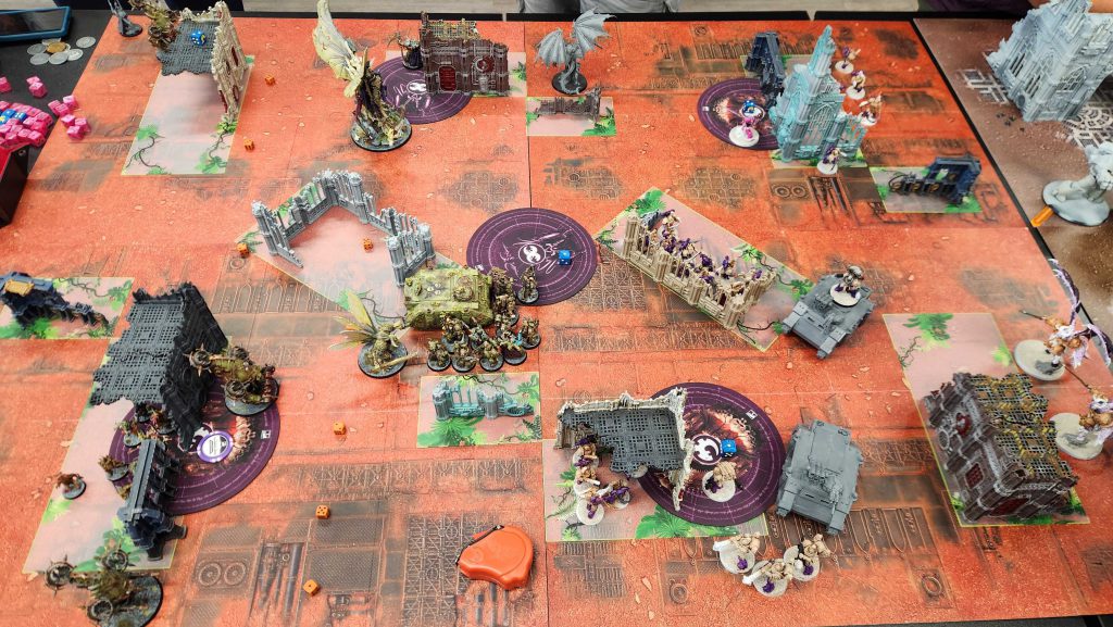 Round 3 was my favorite game of the event. Ryan was an absolute joy to play against. He was filling in for another player, and opted to play Drukhari instead of Aspect Host as he was more comfortable with them. That's great for me, as I've played against Skysplinter on multiple occasions and I think they're a really good matchup for Death Guard, even my list which focuses more on vehicles and may have issues with melee pressure. Incubi really struggle when you make them -1 damage and Lelith is likewise only 1 damage on her attacks, making her only a threat into Plague Marines and Poxwalkers.