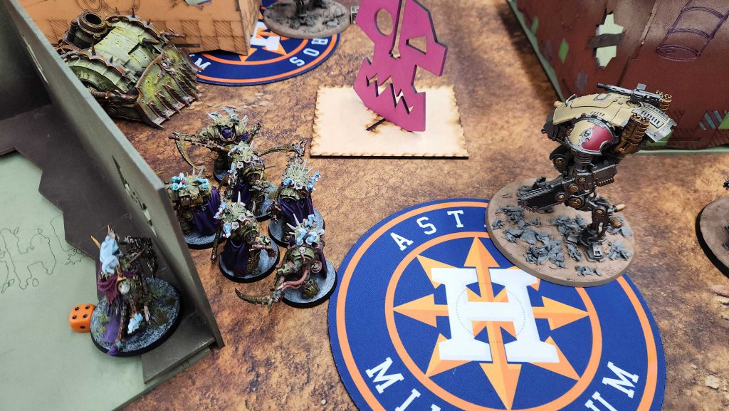 No, the problem was that on Zach's second turn, I used Rapid Ingress to drop my Deathshroud into the middle of the table, to go after one of his two remaining armigers. I moved out 5", then failed a 4" charge.