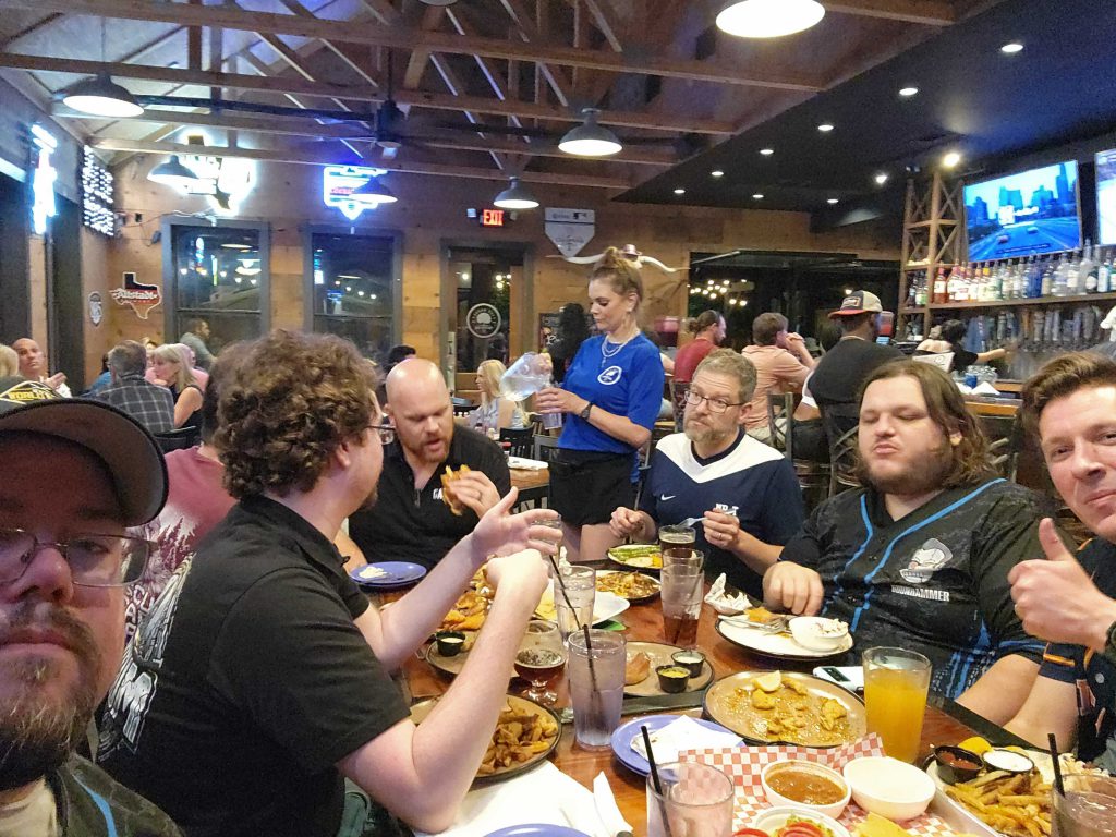 My initial plans were to bring my wife and son to the event, and he'd participate in the hobby challenge again this year. As we got closer to the event however, she ended up being unable to take the days off work and the event coincided with his last days of school, so they decided to stay home. As a consolation, I was able to convince Andrew "Hero of Team Imperium" and "Destroyer of Cars" Corban to come along with me and split the cost of a room. It's a little under four hours' drive from Houston to Dallas, and having a buddy along to talk to and remove the monotony of those hours filled with long stretches of four-lane highway is a big plus.We stop at Bucc-ee's for dinner on the way up and then end up grabbing drinks on arrival with Craig "MasterSlowPoke" Sniffen and Steven Salazar. We're staying at the Courtyard right up the hill from the venue, and it's plenty walkable at night. Technically it's walkable during the day but I wouldn't recommend doing that in 90-degree heat. We walk over to the venue, have some drinks and hang out, then walk back up to crash for the evening.