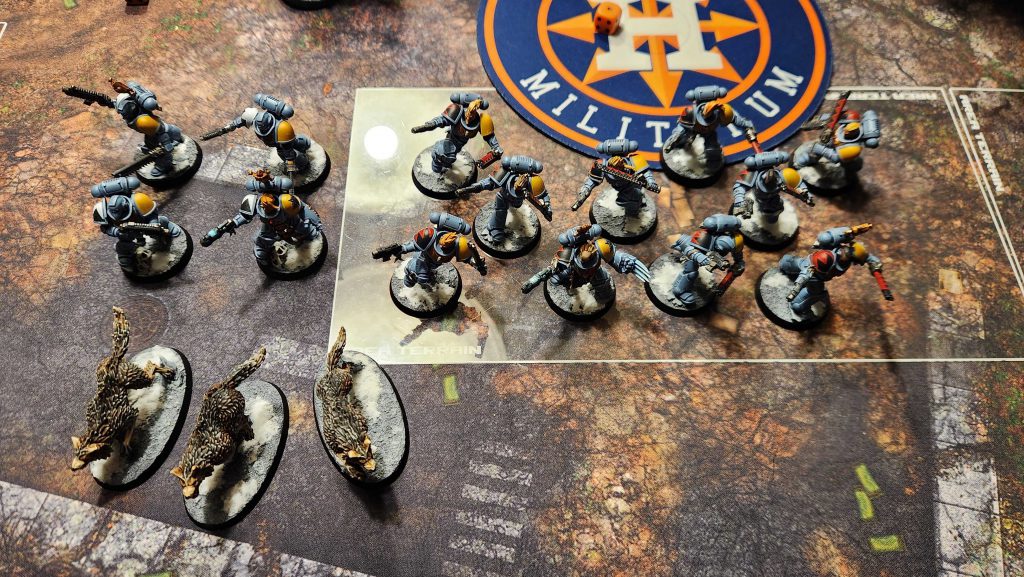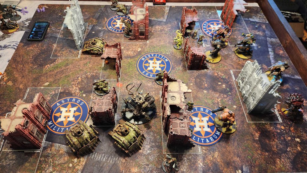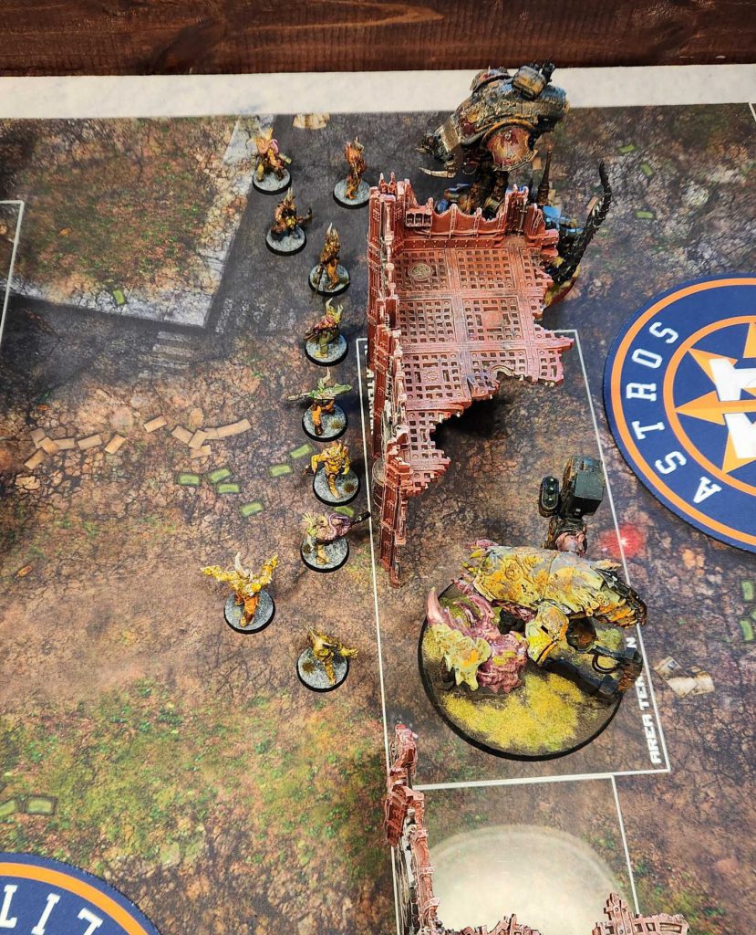 - Advance my Poxwalkers to jam Luke in his deployment zone and prevent him from being able to emerge on the first turn, letting me deal with half of his army at a time.