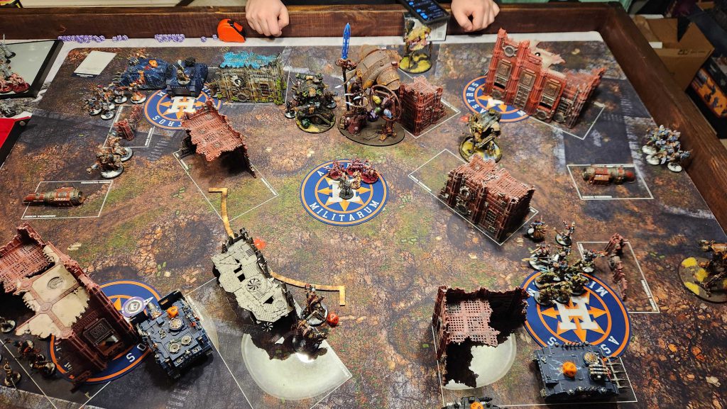 With the list set I needed to get in a practice game, and so I called up my buddy Luke for some Saturday night hams-and-hangouts with the wives. Luke's running Chaos Knights and has been testing different Iconoclast Fiefdom builds, and that makes him a good opponent to test against.
