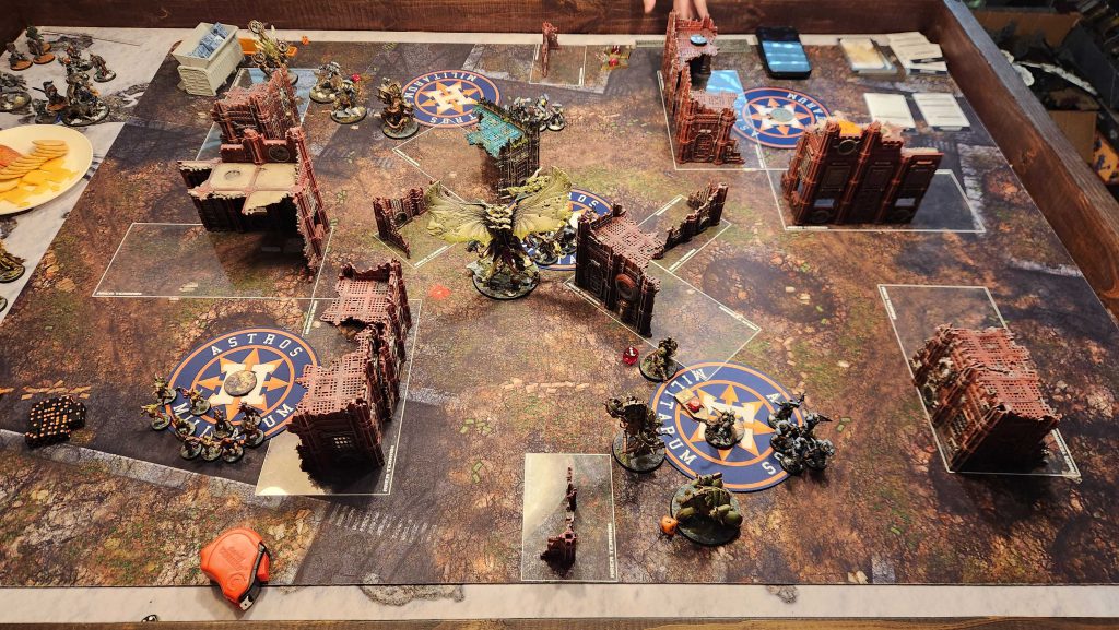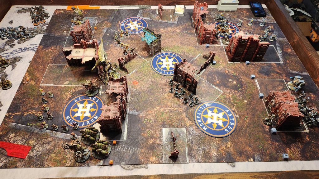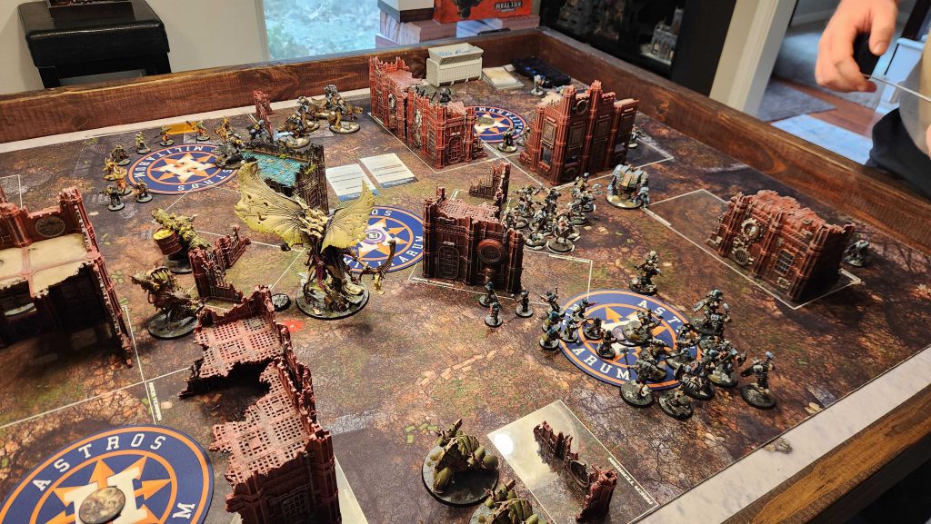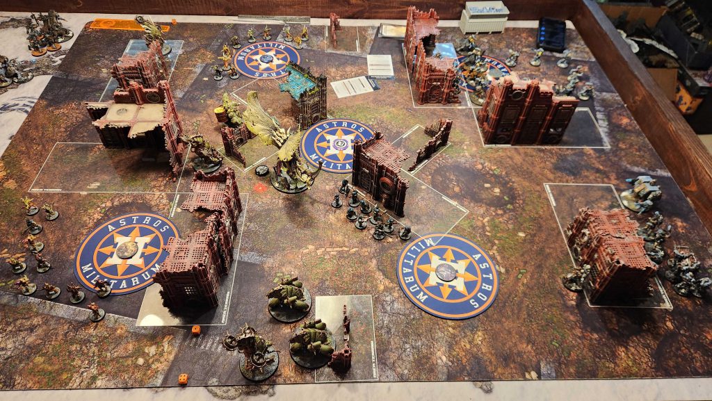 This is just a bad matchup for Garrett, and not having shooting means that Mortarion can roam around the board freely and dominate the center. I mostly keep him off the objective to avoid the Lieutenant's ability but he easily picks up his cost in Terminators over the course of the game.Result: Win, 13-7