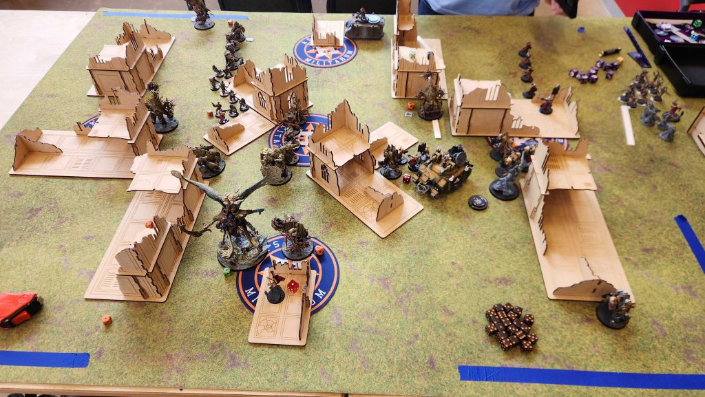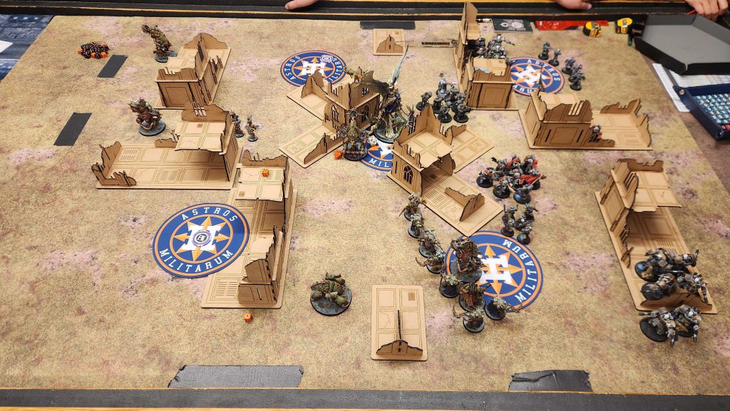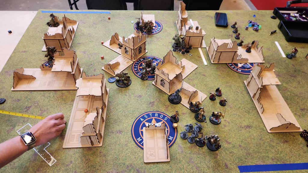 That mattered a ton - on Chris' turn, the Rough Riders failed their Battle-shock test, meaning they didn't hold my home point and couldn't score him hold 2 or hold more. I kept the lead going into the final turn, where I was able to handle the Dorns eventually with help from the Daemon Prince and the other unit of Deathshroud and I got super lucky drawing Cleans and Area Denial on the final turn to win 76-67. I definitely misplayed at the start, got lucky at the end, and didn't have to fully answer for my bad decisions.