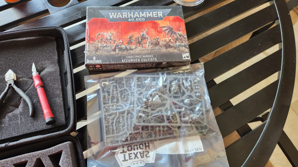 Hobby-wise, there's nothing on the island. Any hobbying I'm going to do is going will have to be something I bring with me. On that note, I've been talking for a awhile about Traitor Guardsmen and Accursed Cultists but never actually assembled any. For the most part, that's a matter of personal preference: I have never been a fan of cultists or traitor guard. I think they're neat, I think they deserve models, but I'm here for the Chaos Space Marines.