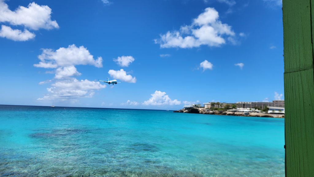 The second day we hit up the airport bar, which is kind of a famous spot in St. Maarten. That's because the airport itself is right on the beach, and when planes come in, they land right there, often coming in low enough to result in some insane photos. I didn't personally grab one this year, but here's one from Shutterstock to give you a pretty good idea. It's trivially easy to take one of these yourself if you hit up the bar across from the airport. The best time to go is on a Saturday between 11am and 2pm; that's when all the flights come in.