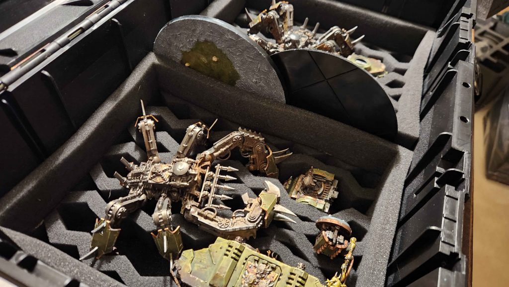 With the pieces in place, it all works well, giving me a base that clips to the model easily and can be detached just as readily, making it easy to transport what are otherwise really large, bulky models that can take up lot of space. That means the bases can slide sideways into my mini transport case without any trouble, making it easy to travel with the army. That's a big part of what kept me from putting bases on the Defilers - well, that and being unable to move them past most ruins.