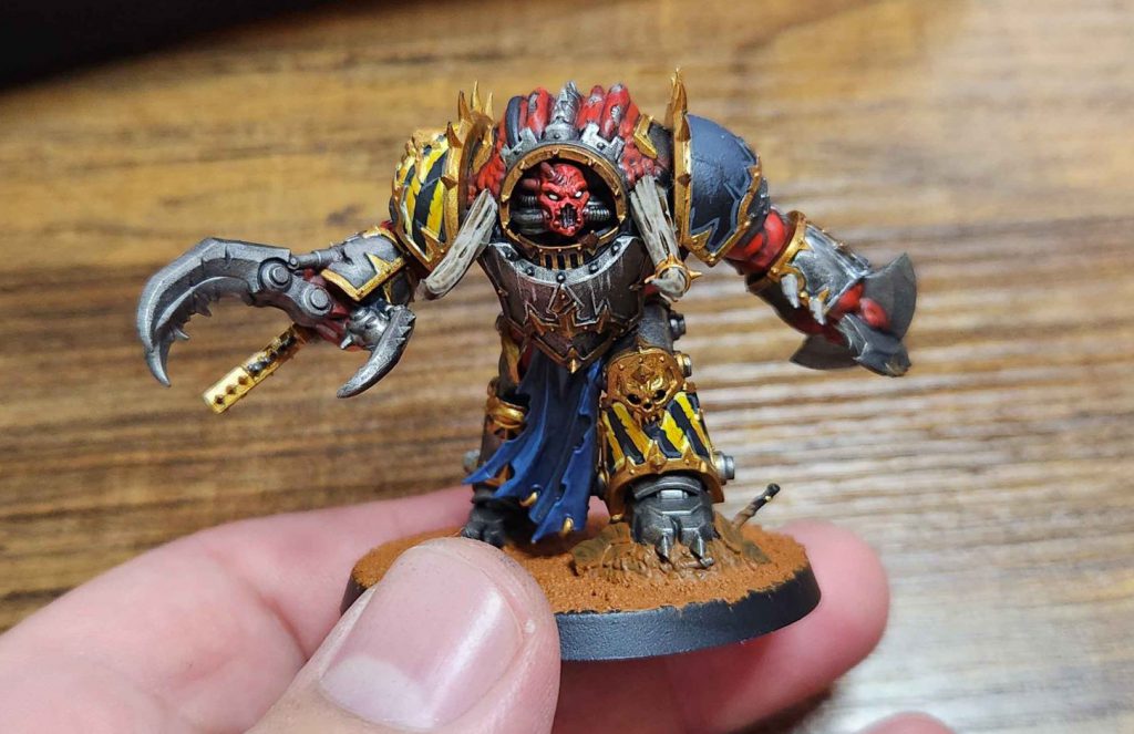 Credit: Robert "TheChirurgeon" JonesI'm really happy with how he turned out, and I'm glad I did some extra work on his base. My Iron Warriors are notably on different basing schemes from my other Chaos armies, in that they're on muddy wasteland bases painted using Blackfire Earth texture paint. I like the look this gives them but it doesn't lend itself as well to adding tufts and snow. I'm still figuring out what I want to do when I'm not adding rubble to those bases. Maybe I will do tufts; not sure yet.