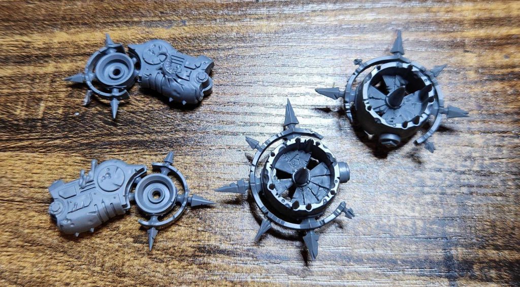 The other thing I've been doing is fixing my Bloat-Drones and Blight-Haulers. Over time the little spikes have snapped off these and when it happens they get lost 100% of the time. I generally just kind of let it go when that happens but I've gotten kind of sick of looking at them missing multiple spikes so it was time to fix things. I raided my bits box and I had a few extra engines and spike bits I could use for this: