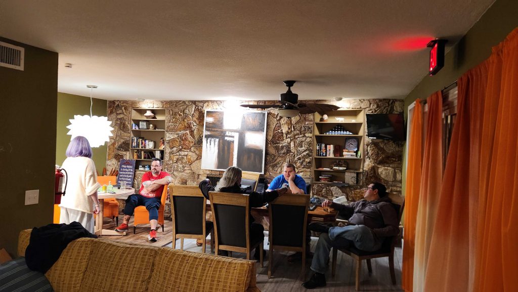 My wife (she of Niche Tea fame) and I arrived at the house on Friday night. My teammate David Miracle picked out the house and handed car rental this time and he found an interesting U-shaped bungalow about 15 minutes from the venue. It's kind of a wild place - there's a pool we didn't use since temps dropped to about 30 degrees at night - and a lot of pictures of older movie stars on all the walls. Plus a large wall supplied with sidewalk chalk, on which we were asked to draw things.