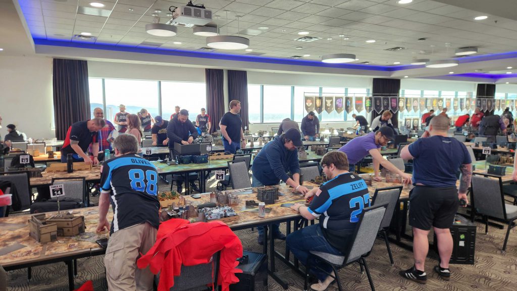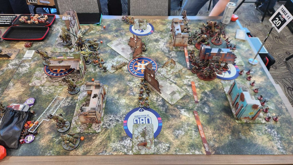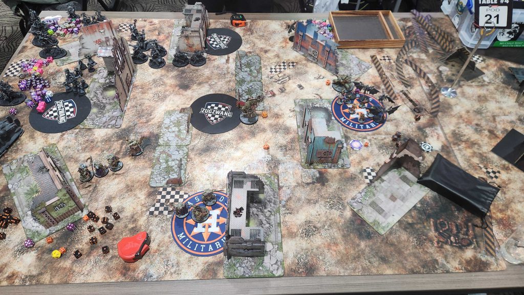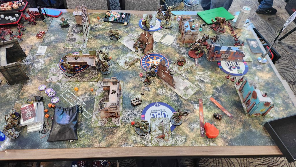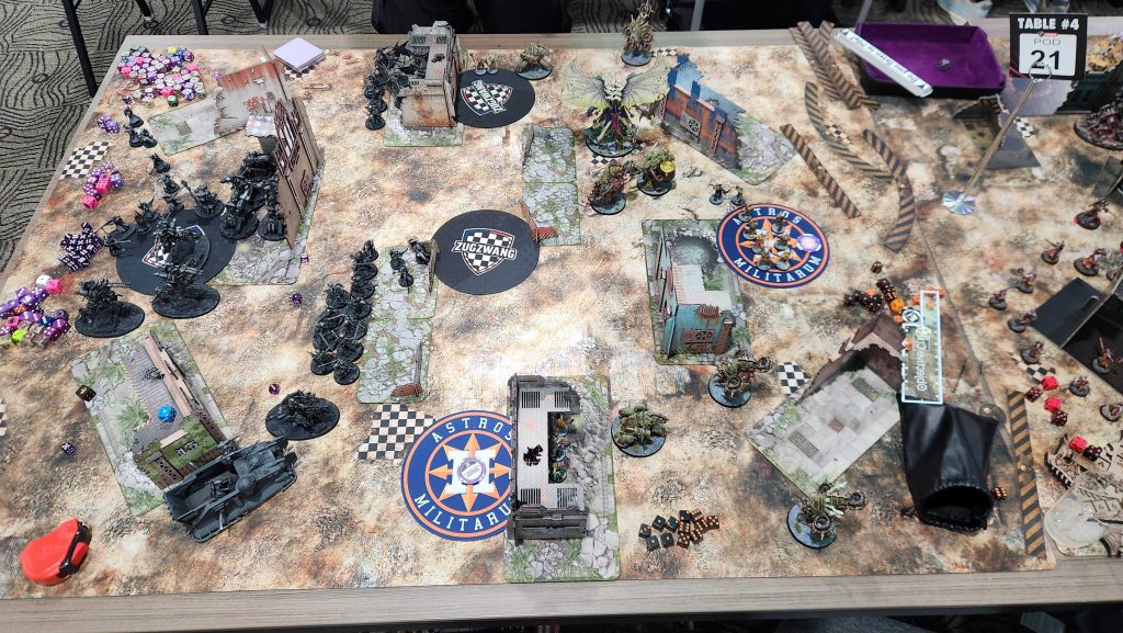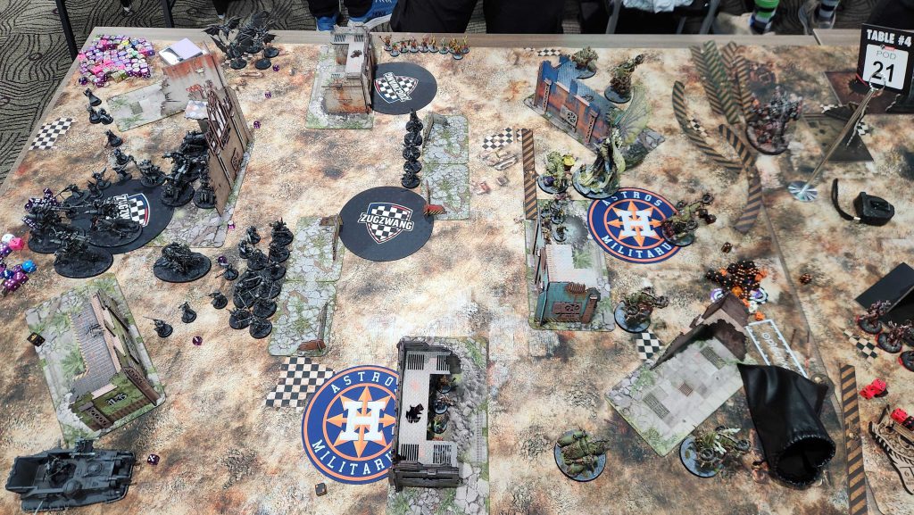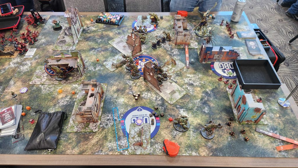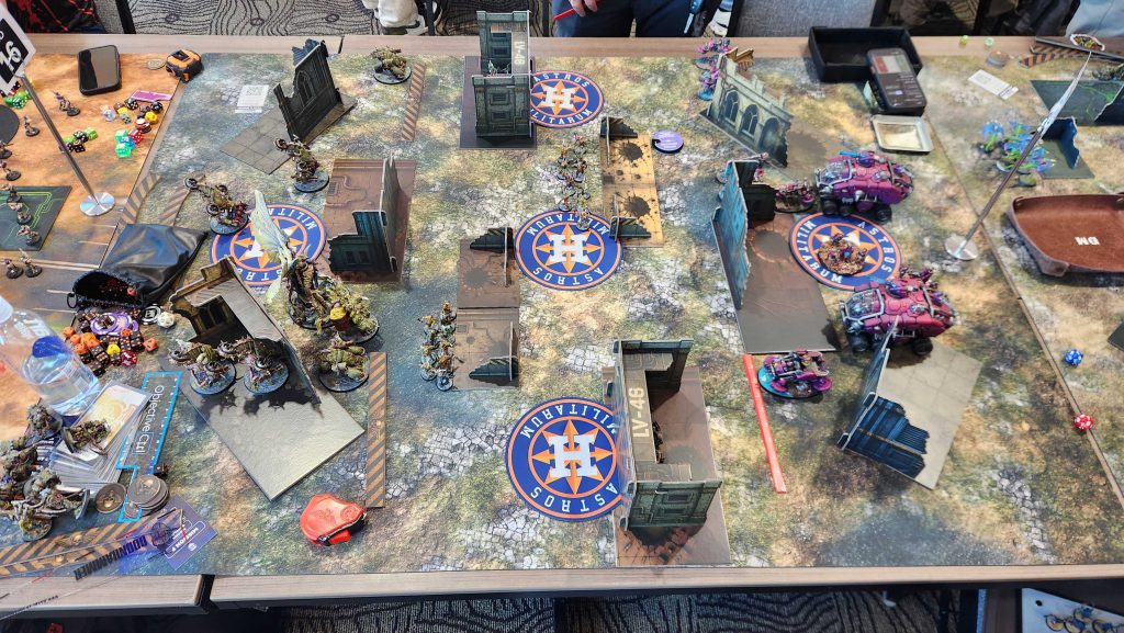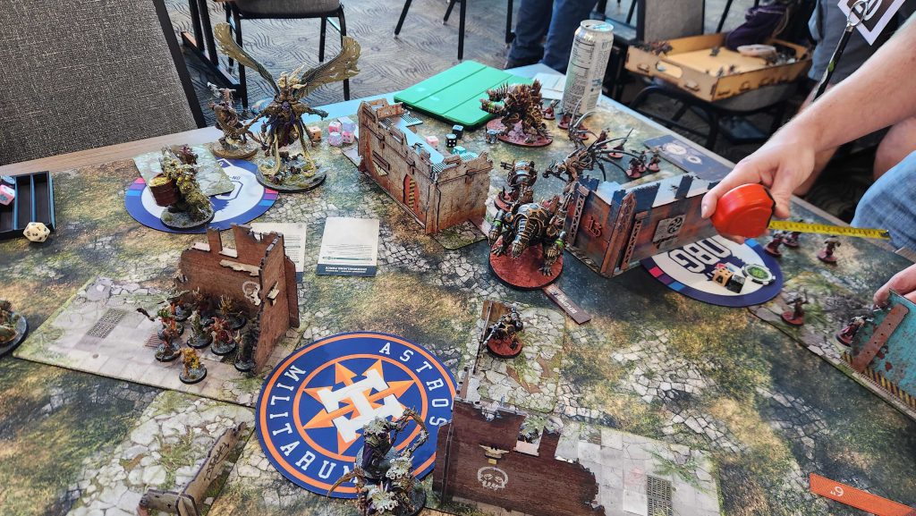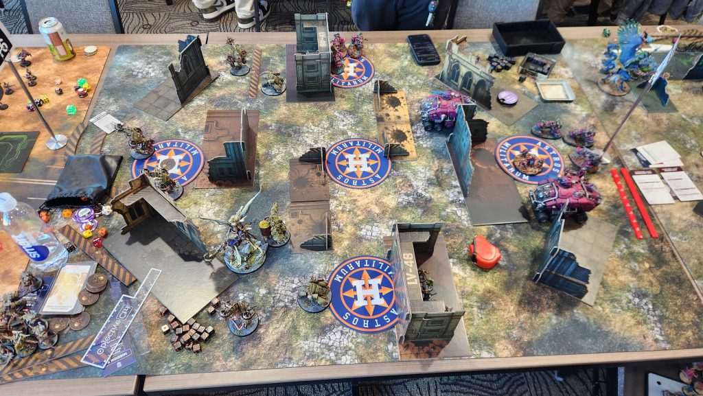 Floof was a great opponent and this game was exhausting. Admech are really good and breachers are a nightmare for me to deal with, especially when they have [LETHAL HITS] to go with it from a Manipulus. Still, while I was able to eke out a win, we lost all four of the other games, mostly by narrow margins. We take our first loss of the day and end up 2-1.