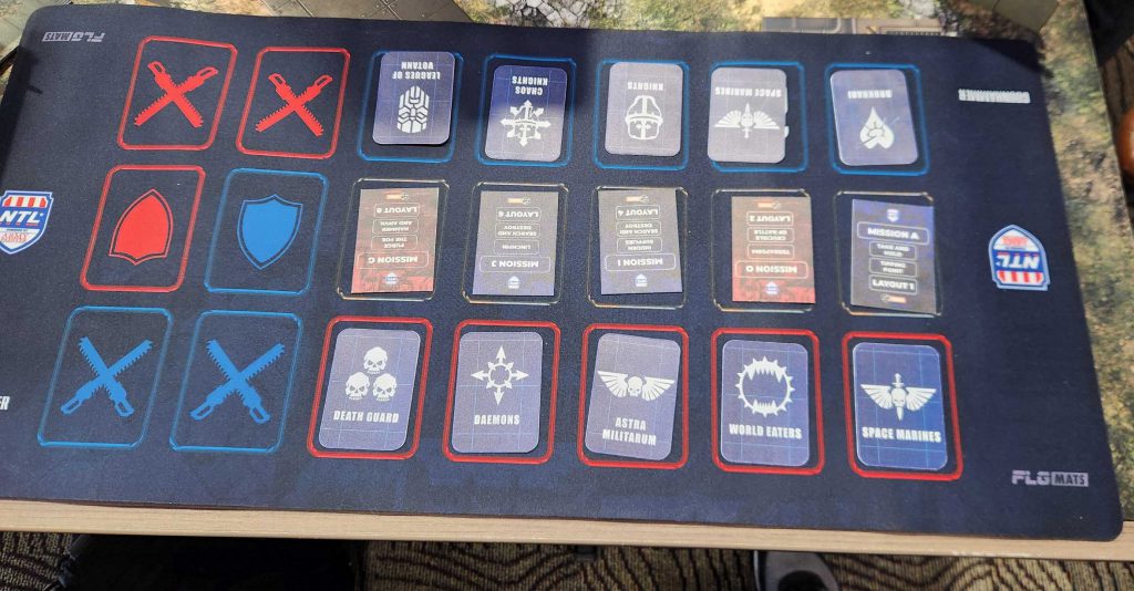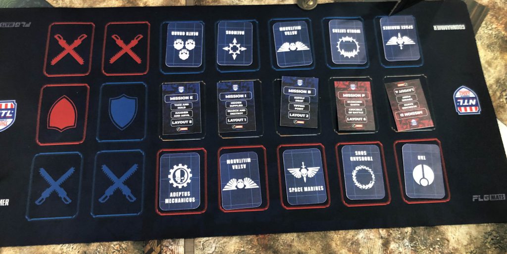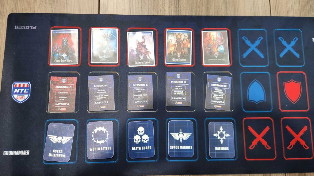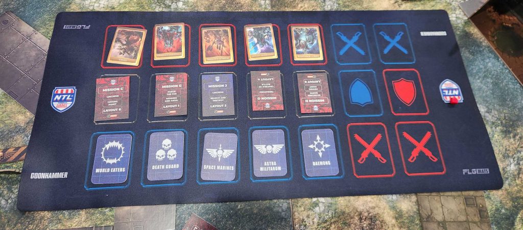 I've got a good all-rounder list and I can be put out as an Attacker or Defender. Our general plan early on is to use Astra Militarum and World Eaters as defenders, as they have a bigger reliance on terrain. I'd end up defending a bit later to pull undesirables and just score more points but for the most part I'm here to fill gaps.