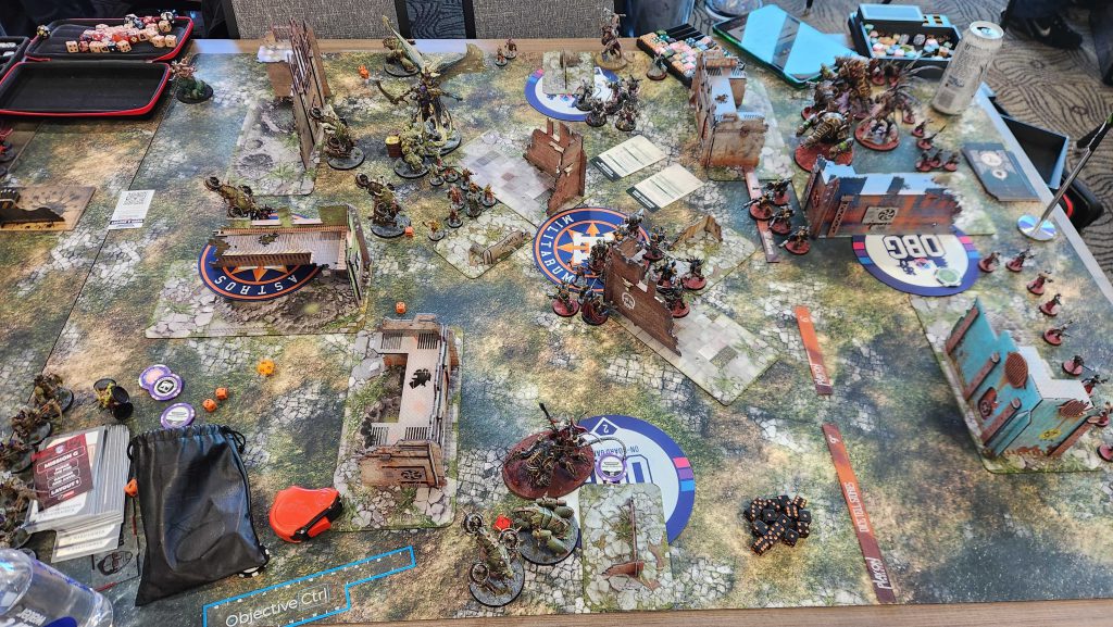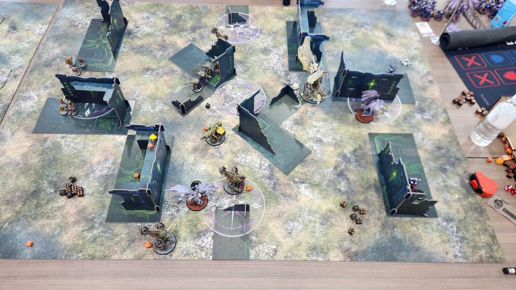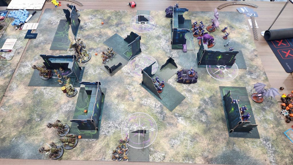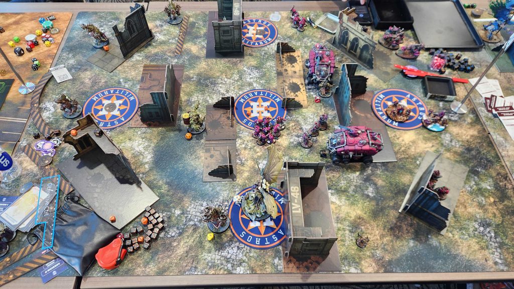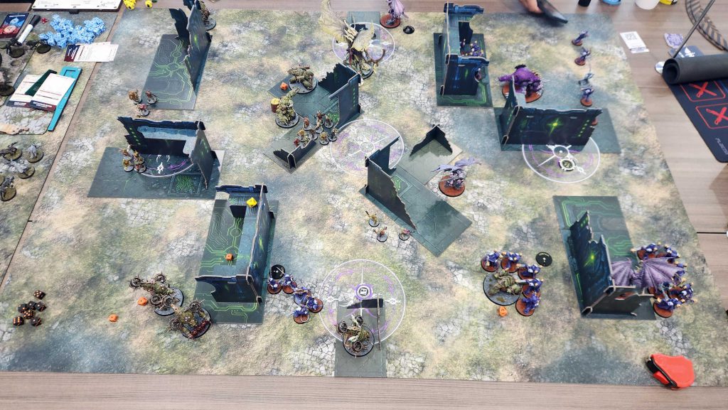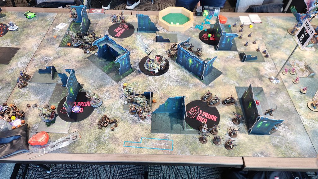 With a belly full of lunch it was time to take on our next opponents. 4 Horsemen had an interesting team comp, and our plan was to get our Scintillating Legion player matched into them, as they can drop a 4+ feel no pain against mortal wounds and psychic attacks using the Improbable Shield Aura on a Lord of Change.