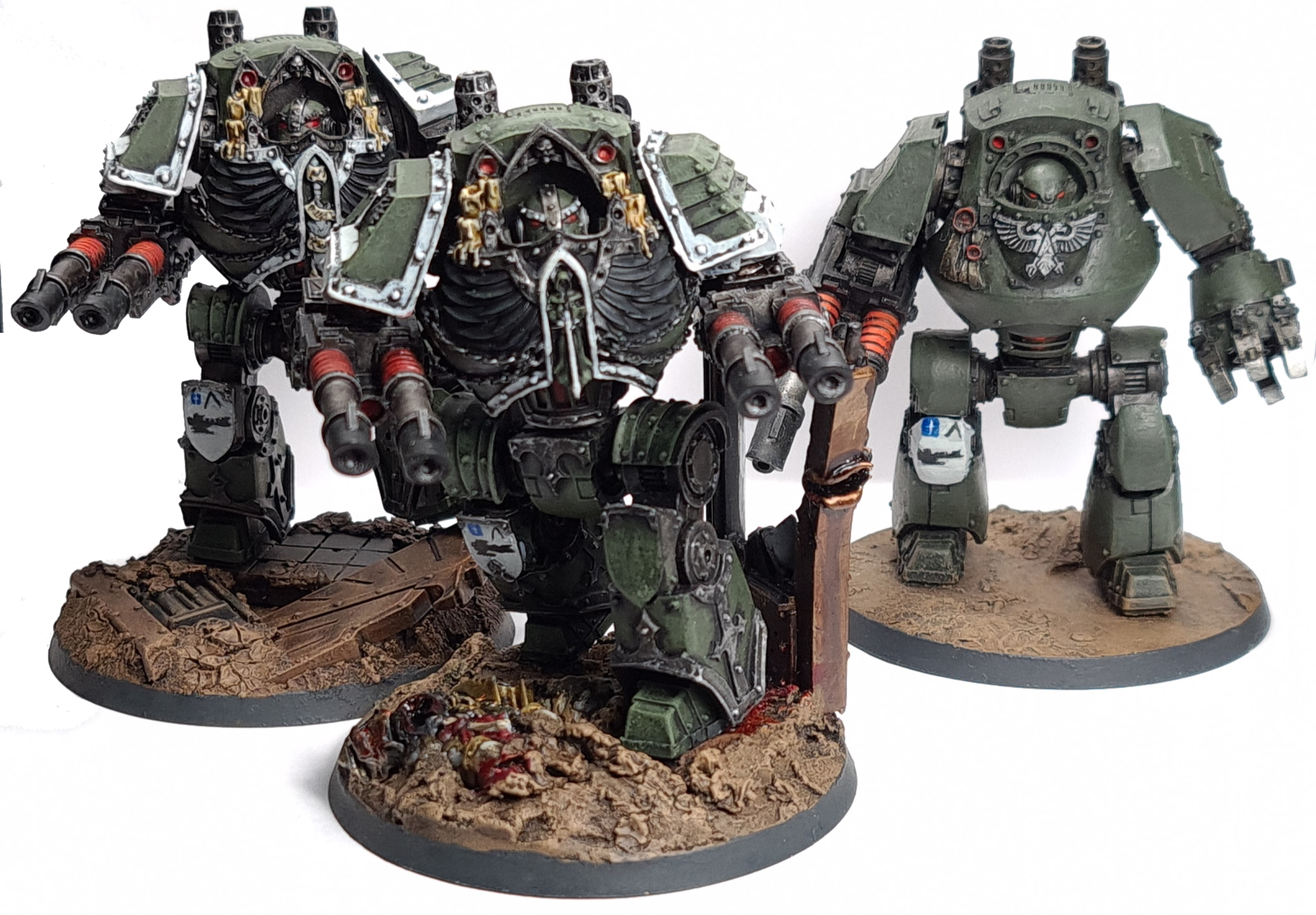 Squad Safir, Swords of Davion Relic Contemptor Dreadnoughts. Credit: Tyler "Coda" MooreNow we had to figure out what happened to our troops by rolling dice. Other than Owain all my stuff was extra dead so I had to roll to see if anyone had ongoing injuries, my Eliminators copped it and I