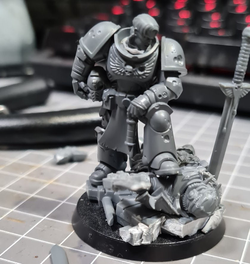 Owain WIP by Tyler "Coda" MooreThe first thing I did was to ask Beanith to ditch power levels and go to points. More on why I threw Power Levels IN THE BIN in a bit. We ran 1,000-point rosters, drawing 500-point forces for game 1, and 1,000 points for game 2. Each requisition increase would nab 100 pts. Simple and roughly the same as starting with 50 PL, playing 25 PL games, and using 5PL increases in normal Crusade play.