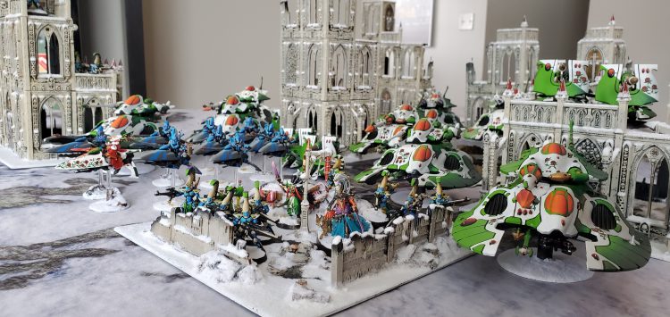 Running this version of the list in some league matches I’ve found that the army still puts out a scary amount of firepower, remains just as durable and redundant, but has an extra mobility and late-game reach that the previous list lacked. The ability to reserve one or both Spear squads for turn 2 or 3 has been a huge boon in keeping my opponent on their heels and has turned more than a couple games where a single squad would have been just a speedbump for my opponent. It also gives me some increased flexibility at the table with buying an extra Exarch trait for a deep-strike charge and swapping Ghostwalk on one of my casters. If I need it, it’s there, if not, then I don’t need to swap a CP and Smite.