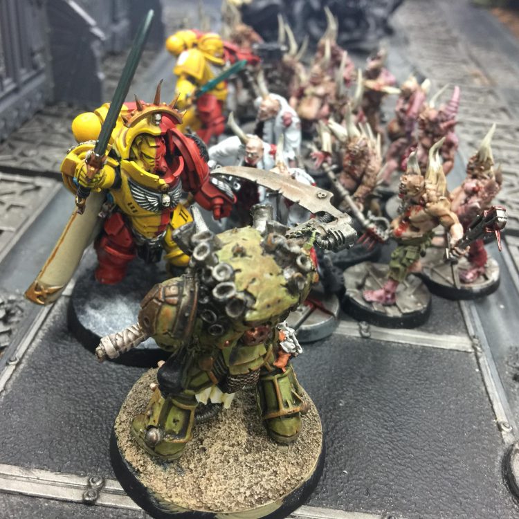 I had the Death Guard half of my Dark Imperium box sitting in my closet for a while before deciding to paint them. I had never really been interested in Chaos Space Marines as I was a staunch loyalist. However, in chatting with the Goonhammer crew and reading up on the Death Guard during the Horus Heresy I grew to like them, especially Mortarion.
