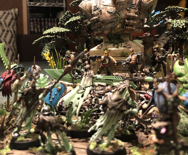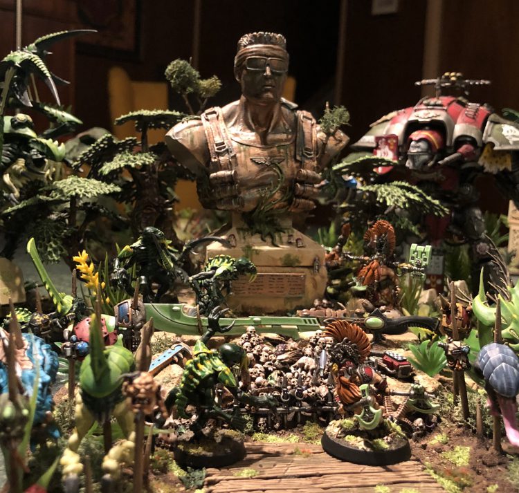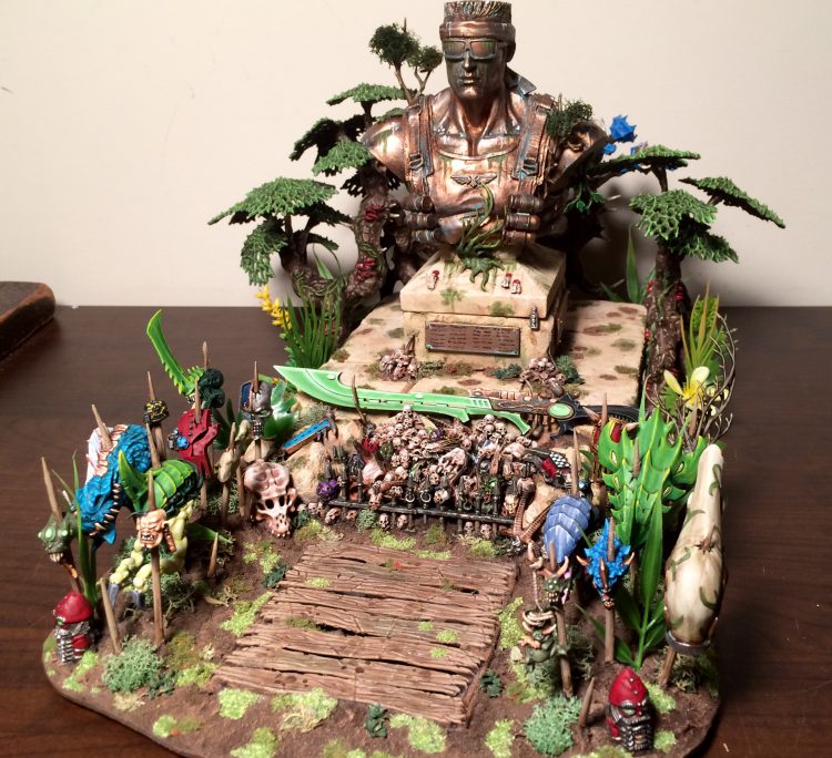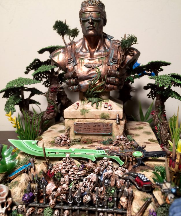 Narrative Hook: I deploy a sniper deep in the terrain piece, behind the statue where my opponent cannot see it. I do not mention it again until the bottom of turn three, when it snipes the last wound off his Warlord. We have a vigorous and lively debate about sportsmanship.Chilling!