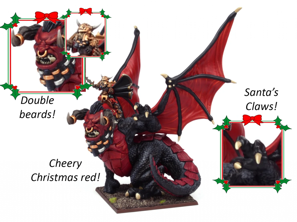 The Abyssals in general are some of the happiest models in all of Kings of War. Nearly every one of them has a toothy grin that just screams (tortured) Christmas spirit. But only the Abyssal Warlock fulfills nearly all the criteria of what makes a stereotypical Santa.