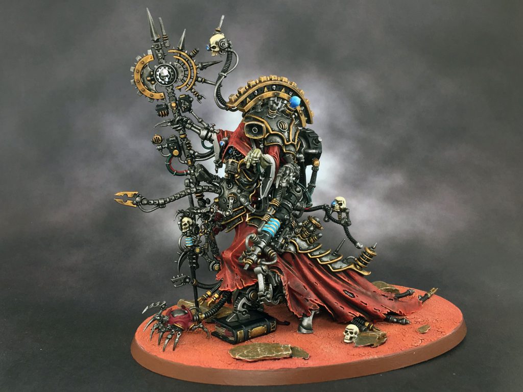 Like a lot of AdMech lists, a core part of the strategy here is building a shooty castle around Belisarius Cawl. As one of the units in the game that gives a "full" re-roll aura (and until recently the only one that let you re-roll "modified" misses), Cawl is a gigantic force multiplier that turbo charges other Mars units around him (frequently used to great effect by our own Naramyth). Common choices to go with Cawl are Kastelan Robots, Dunecrawlers and (more recently) Skorpius Disintegrators.