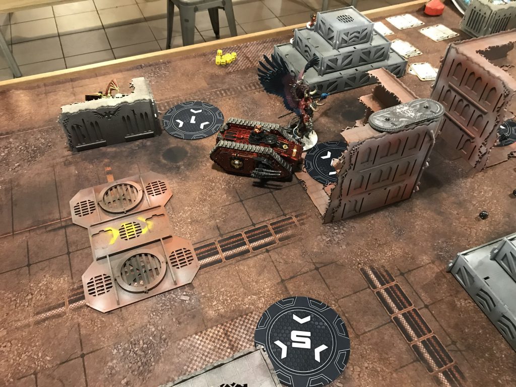 First, however, I cleared out the front plane with psychic and incidental shooting, and it duly exploded. I was initially salty about this, as it was another vehicle explosion amidst my army, but after picking up models I suddenly realised.