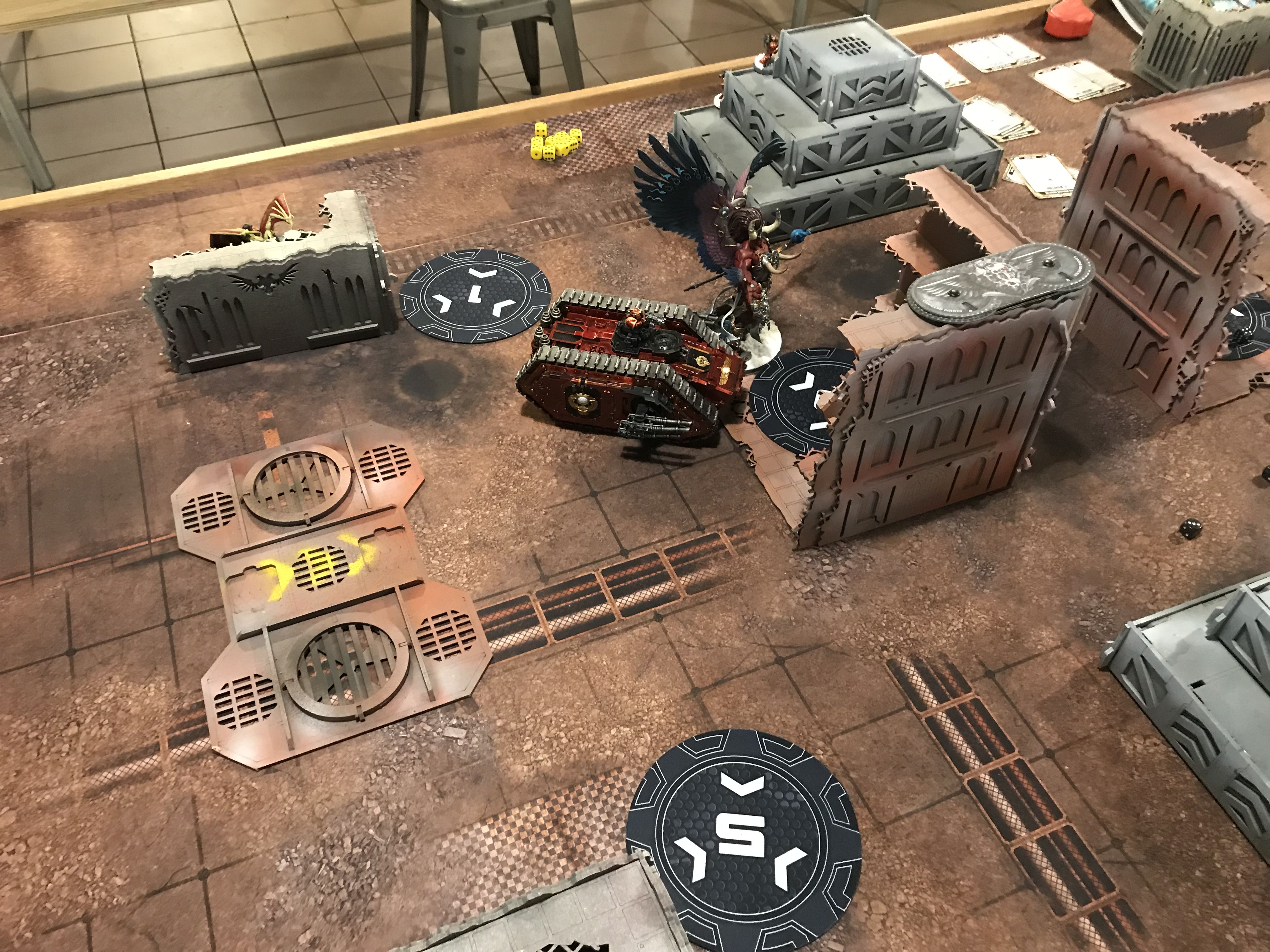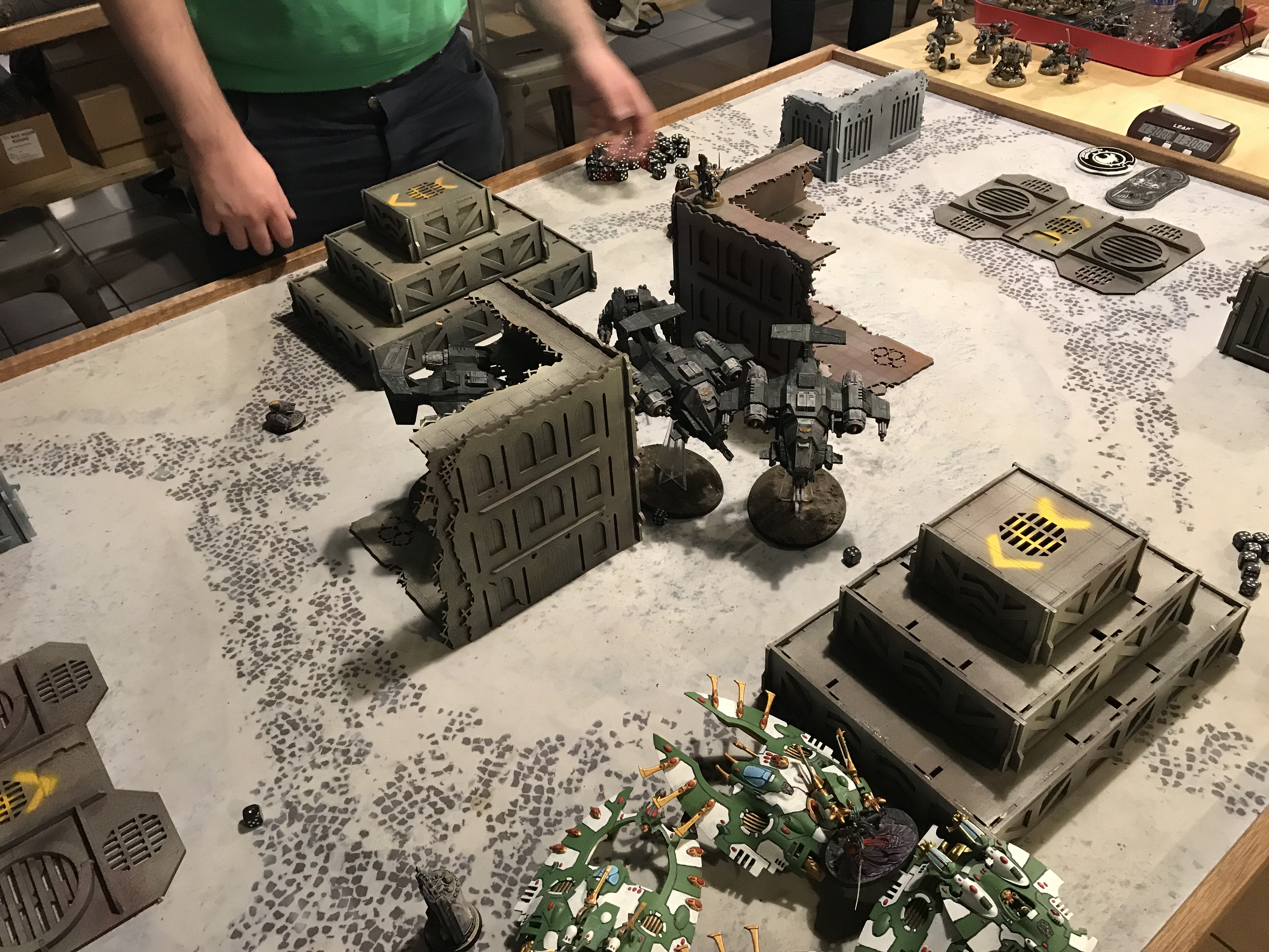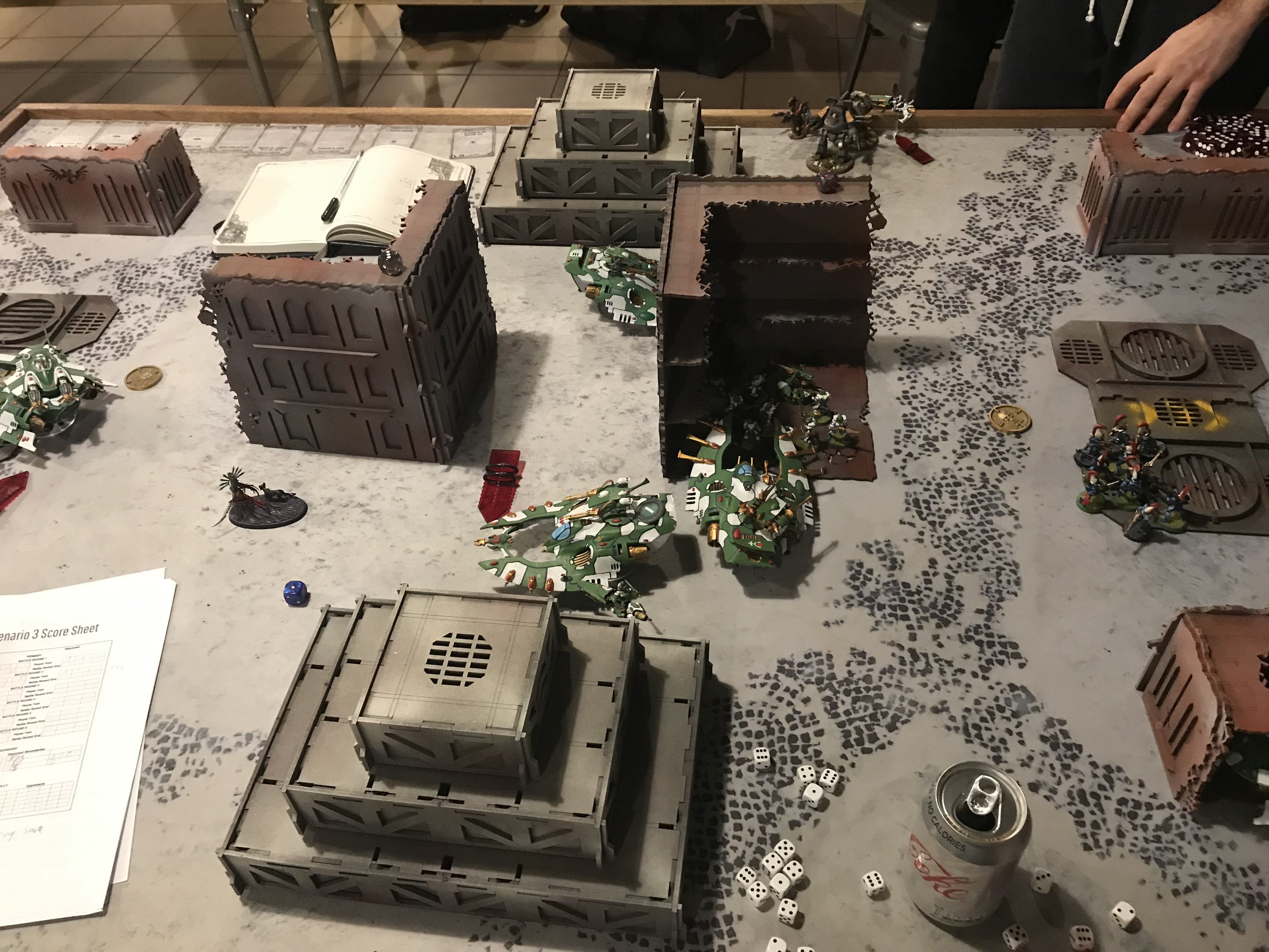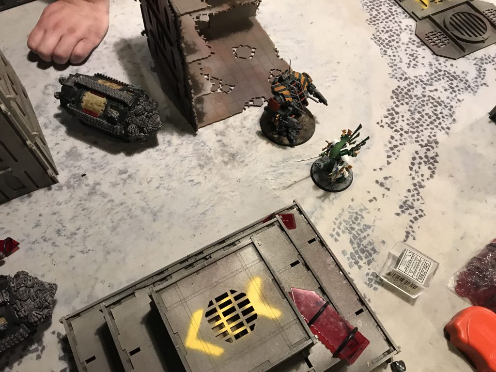Iron Hands are pretty good y'all, and much like Fists the fact that there's at least two valid ways to play them is part of why they're so terrifying. This game left me with the distinct impression that the best you can aim for going second against Hands with Eldar is a high scoring loss, and honestly i only got a crack at that because he abysmally low-rolled turn one. The sheer volume of re-rolls for everything that matters which can be stacked onto platforms that are either unshootable or effectively unshootable is a complete nightmare.