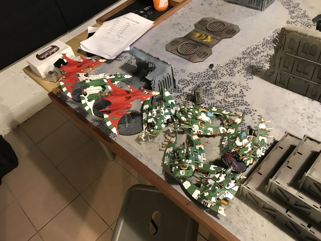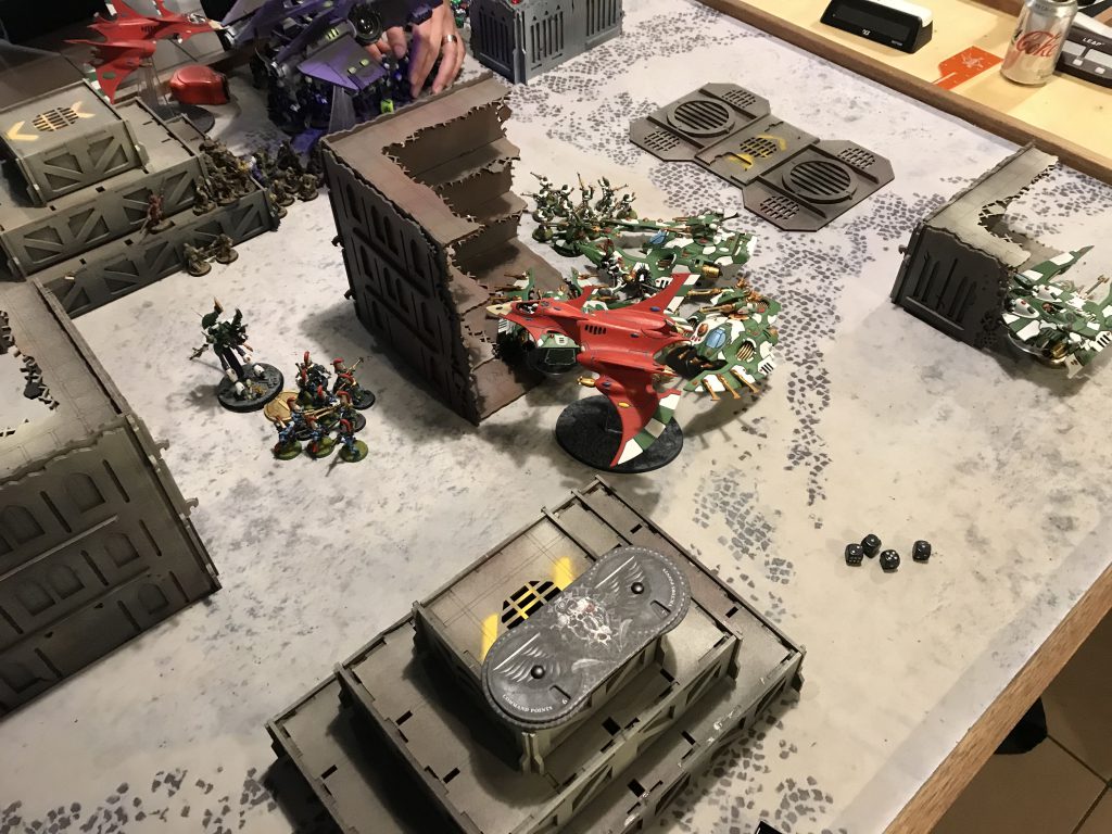 If I go second the aim is to use Phantasm to get the planes out of Leviathan range, forcing him to at least use his planes to go after them. Sadly since he's brought the las talons they're pretty good at that, but backlining them behind my army at least forces them to get close enough for psychic and the Autarch to give me a good crack-back.