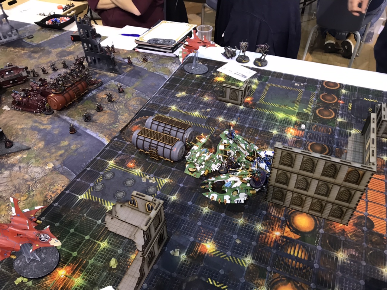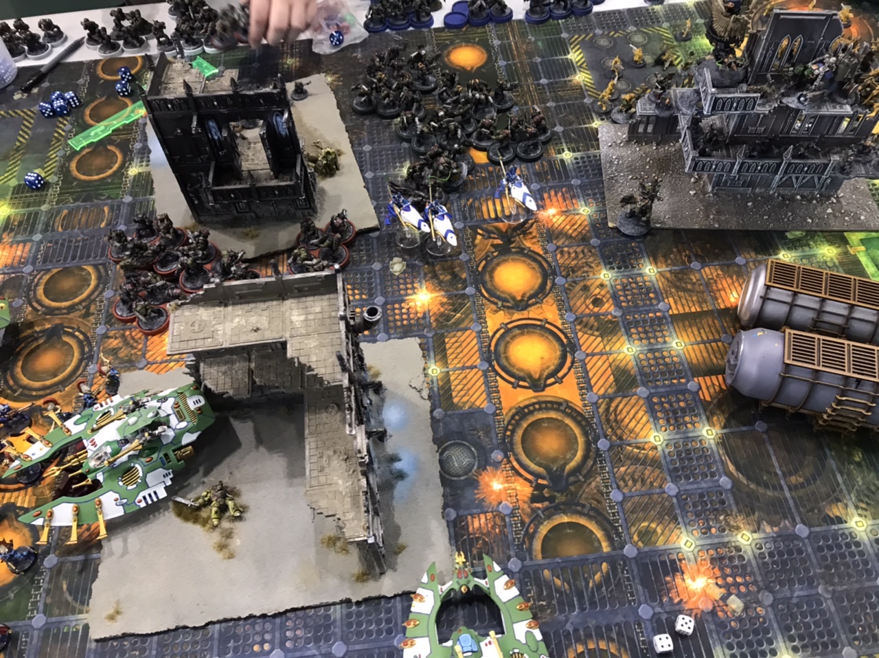 With a mild wobble on turn 2, this went largely to plan. He went first, moved up, and proceeded to do very little to my army thanks to how weak his long-ranged solutions were against my stuff (I also used Prepared Positions). In return, I blew a plane out of the sky and killed a couple of Venoms.