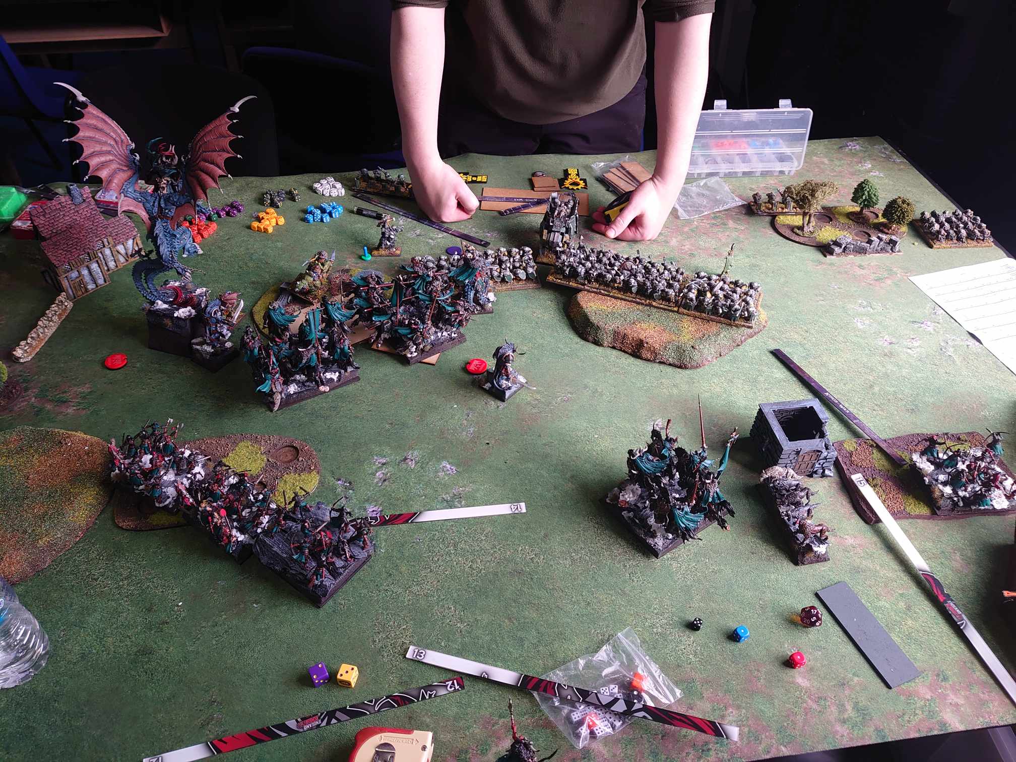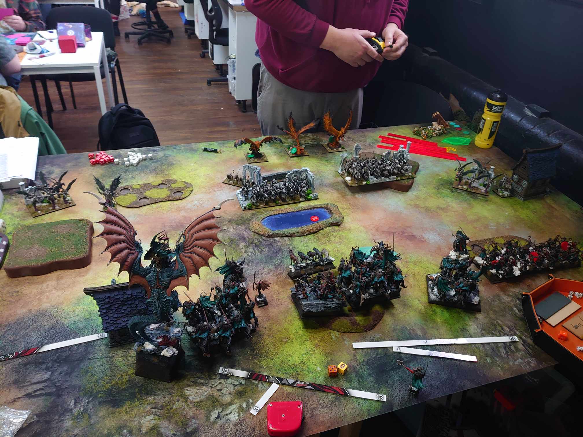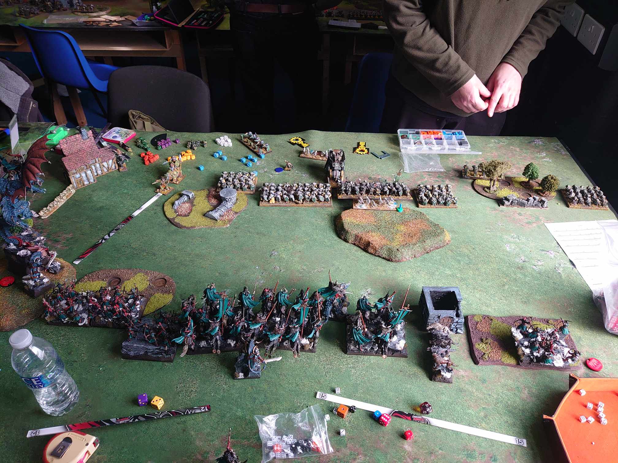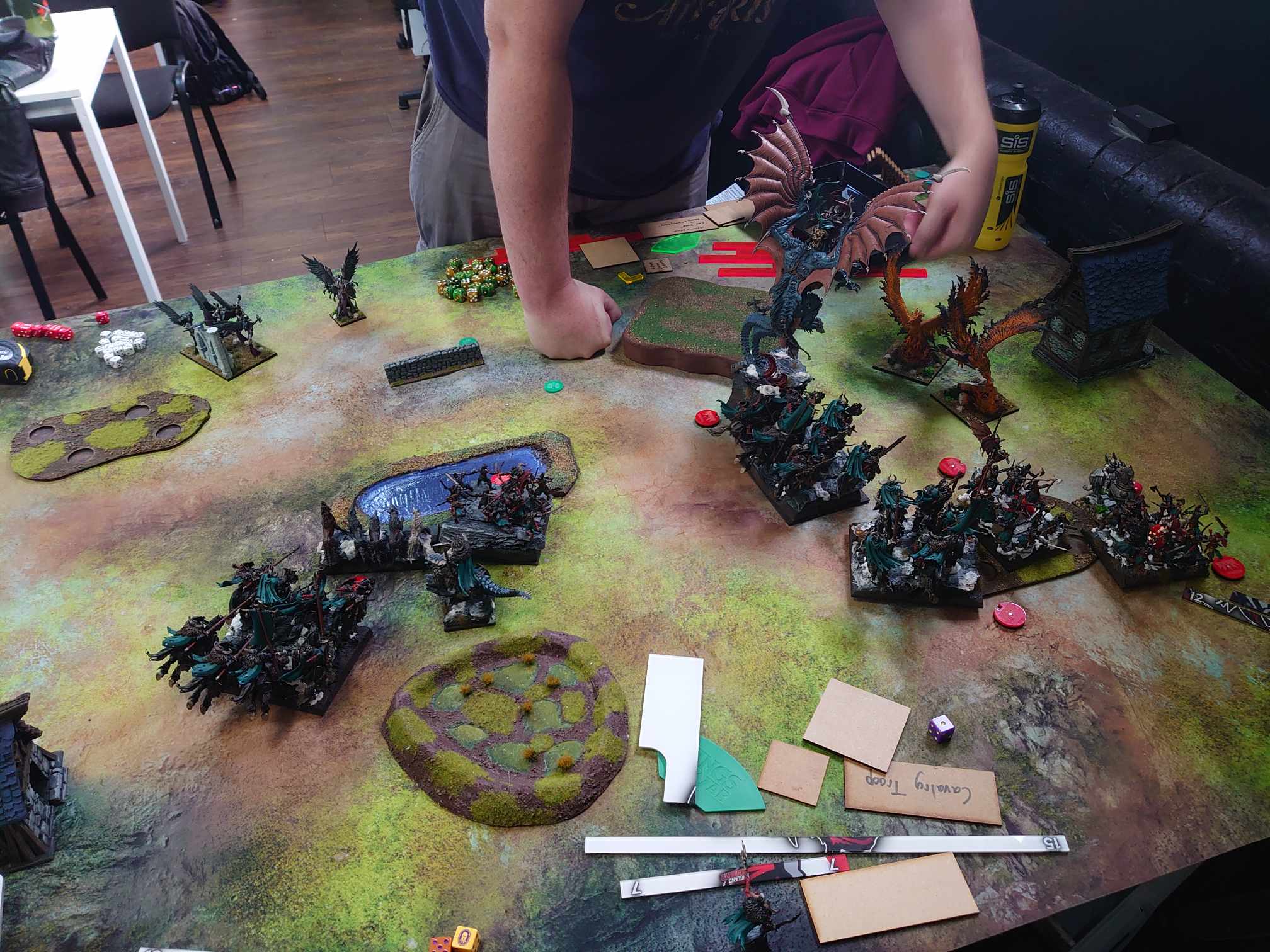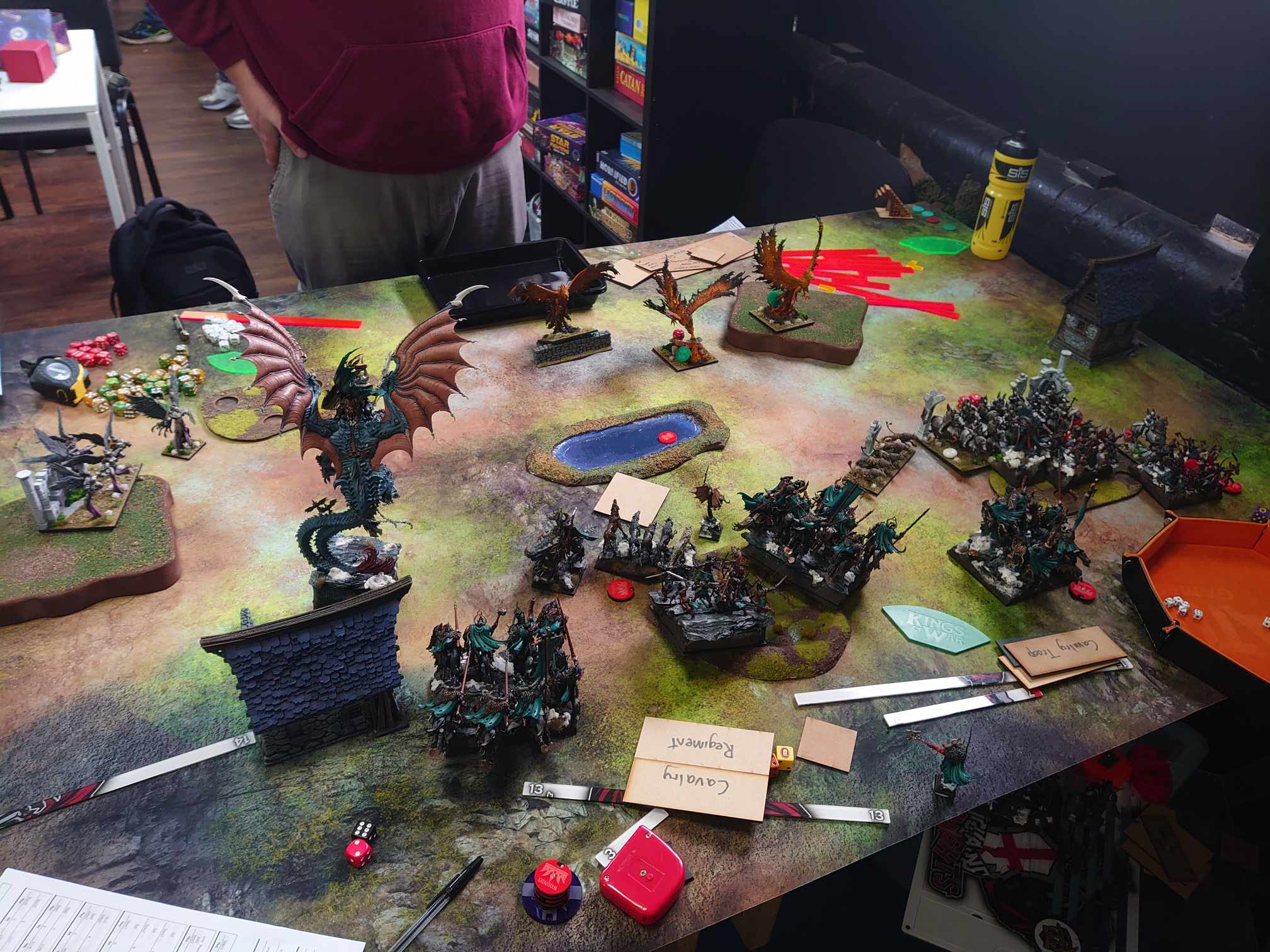 Well, I’m likely not seeing the podium, but I need to win this if I'm to have a realistic hope of improving my Masters score. Tom and I know each other from Ye Olden Days, and we spend a long time before and after the game chatting about a million and one different things; really just a delightful way to spend a round two to be honest. He's playing a grab-bag Undead list with a gorgeous Revenant King on Great Flying Wyrm, and we take a moment to flex about our membership of the Big Dragon Model Club (better name pending).The bad news is the scenario. Dominate is absolutely the bane of my life - I detest playing it and frankly think it represents almost everything bad about scenario design. But, I knew it was here when I signed up, and accept it as part of the price of playing competitive Kings of War. Nevertheless, we go on.