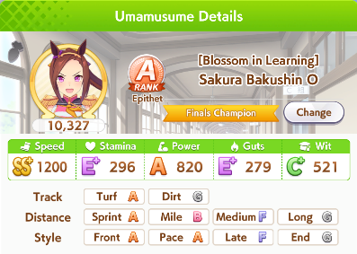 Everyone’s favorite Student Council Representative and In One Ear Out the Other, Sakura Bakushin O, is one of the best Sprinters available in the game. While some other later SSR Umas can outshine her, Sakura Bakushin O has an important benefit: She’s free. Aside from that, Bakushin has another factor, which is her stat preferences. Baksuhin has a whopping 20% Speed Growth and 10% in Wit, meaning that her Speed training is going to be consistently easier and better than other Trainees; Taiki Shuttle has the same spread, meaning Bakushin has the same growth rates as an SSR unit. Baksuhin Bakushin indeed.Of course, to unlock her true potential as a trainee, you’ll want to get Sakura Bakushin O to Star Level 3 as soon as possible if you’re seriously invested in training Sprinters. This is because that racer’s Uniques level up quite a bit at LVL 3, and Genius x Bakushin = Victory is a vastly improved skill that’s worth obtaining. Bakushin’s Potential Levels may be initially confusing, because they almost all want her to be a Front Runner, despite it seeming that she’s a Pace Chaser. This is an issue that can be fixed with Inheritances, and it is generally best to train Sakura Bakushin O as a Front Runner once you can ensure she has an A in the Aptitude. Huge Lead and the evolved version Staggering Lead, paired with other skills, can turn Sakura Bakushin O into an extreme Front Runner, causing her to create gaps that few can keep up with.